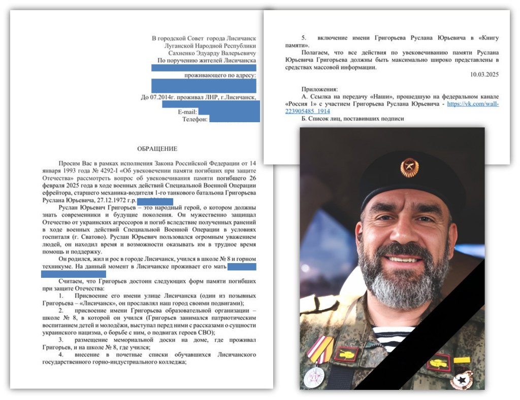 1. присвоение имени Руслана Юрьевича Григорьева улице Лисичанска;