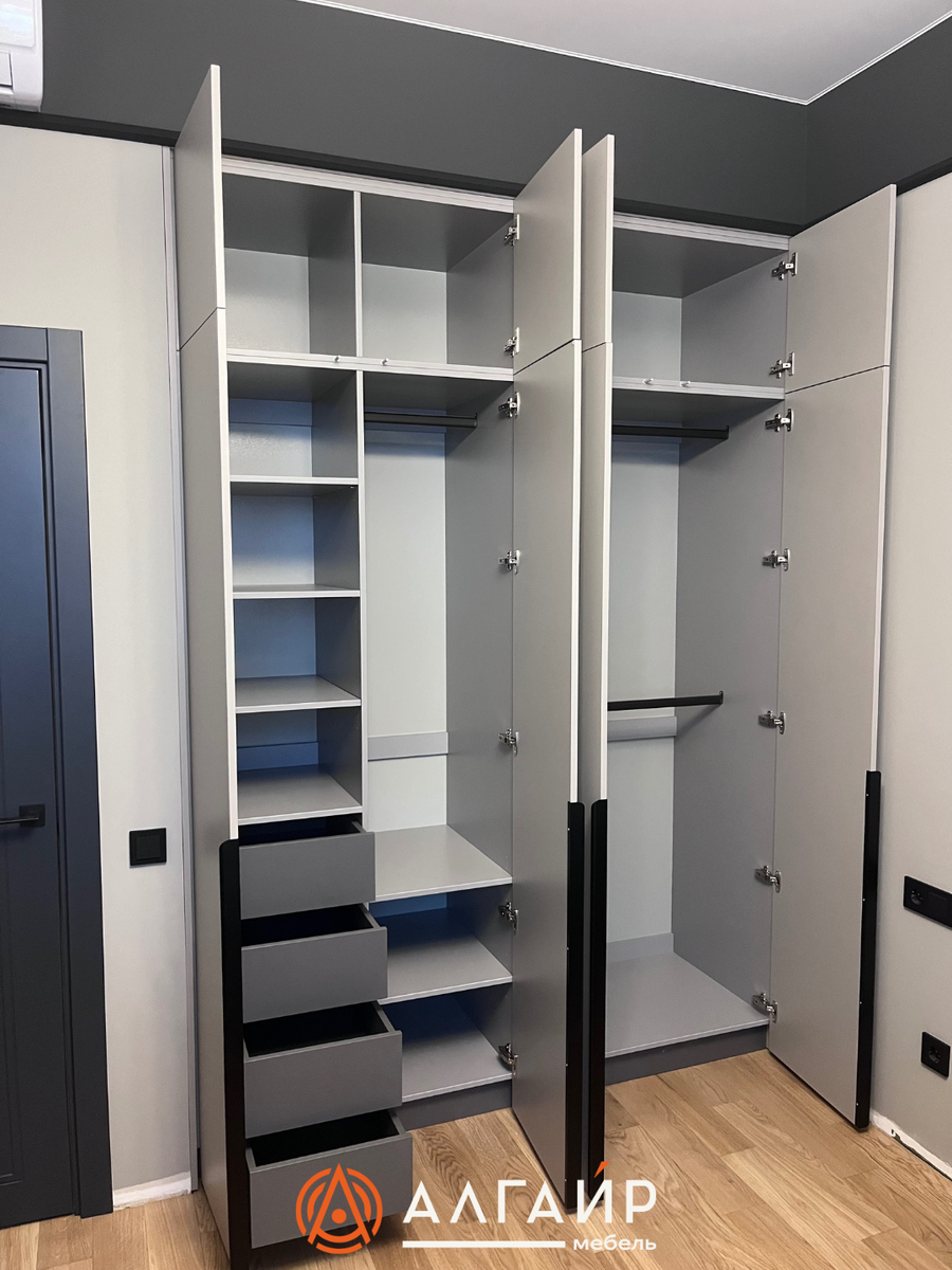 Поставить большой шкаф в квартиру нет возможности из - за маленького пространства? 😣 Запрос заказчика: стильный и вместительный шкаф, который гармонично впишется в интерьер и обеспечит удобное хранение 🙌🏽 Что мы сделали: ☑️ Разработали шкаф с продуманной системой хранения: полки, ящики, штанги – все для удобства ☑️ Использовали современные материалы и надежную фурнитуру, чтобы мебель прослужила долгие годы ☑️ Создали лаконичный дизайн с гладкими фасадами и стильными черными ручками, идеально сочетающимися с интерьером ☑️ Учли все пожелания по размерам и функционалу, чтобы шкаф был максимально удобным для заказчика Хотите такую же мебель, созданную специально для вас? Мы работаем с любым пространством! Пишите нашему менеджеру для заказа 💌