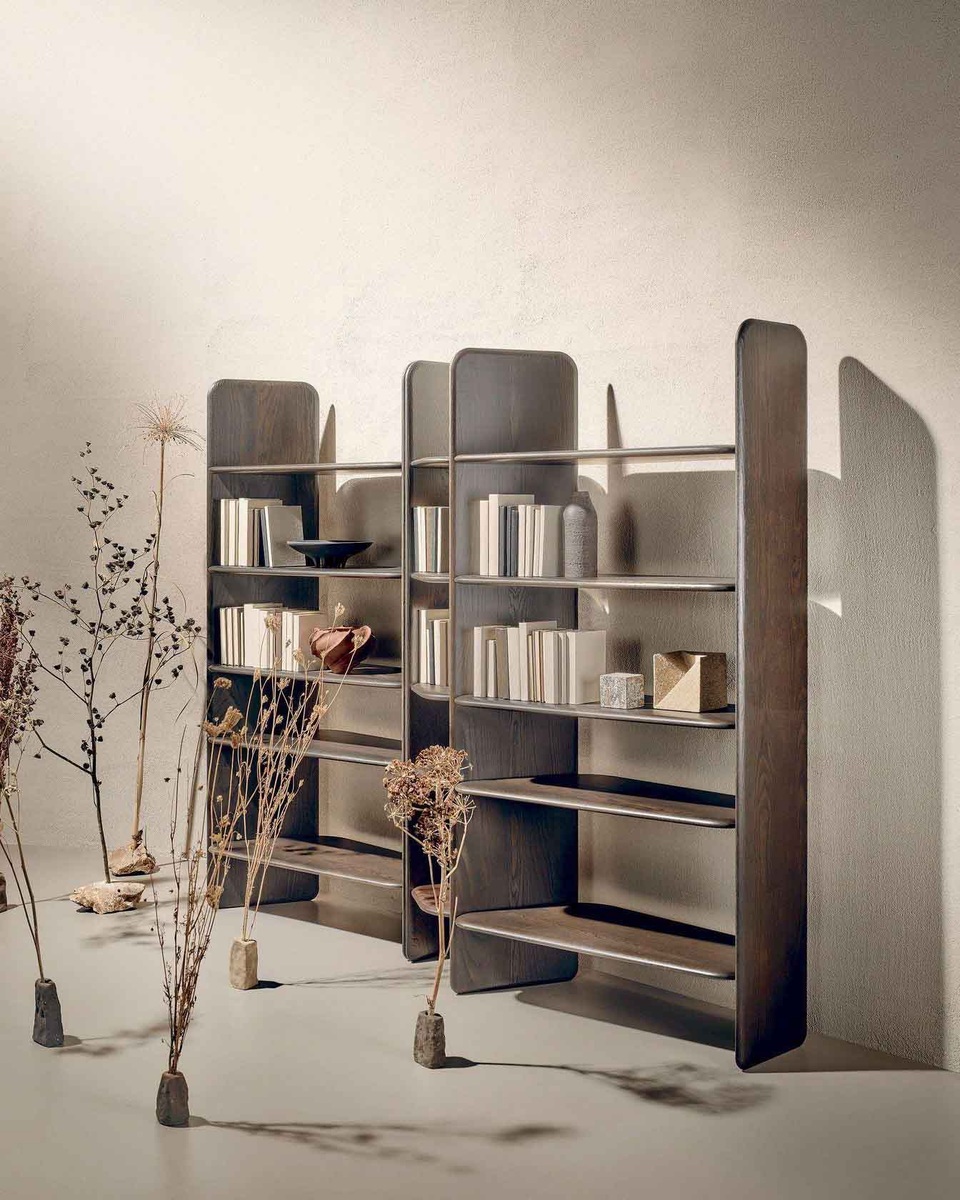 Концепция стеллажа Nook от итальянской фабрики Naturedesign построена на игре форм и сочетании модулей, позволяя создавать динамичные и выразительные интерьерные композиции. Три модуля разного размера дают возможность адаптировать стеллаж под любое пространство. Закруглённые линии делают Nook идеальным не только для установки у стены, но и для размещения в центре комнаты, где он может выполнять роль стильного зонирующего элемента. Полностью выполненный из дерева, Nook становится полноценной частью интерьера. Он представлен в нескольких вариантах отделки: Абсолютный чёрный, Мокко, Карамель и Орех. Размеры модулей: 50 × 48 × 196 см, 100 × 48 × 96 см, 135 × 48 × 96 см. Благодаря такому разнообразию, Nook легко адаптируется к любым потребностям, создавая эстетичные и функциональные решения для современного пространства.