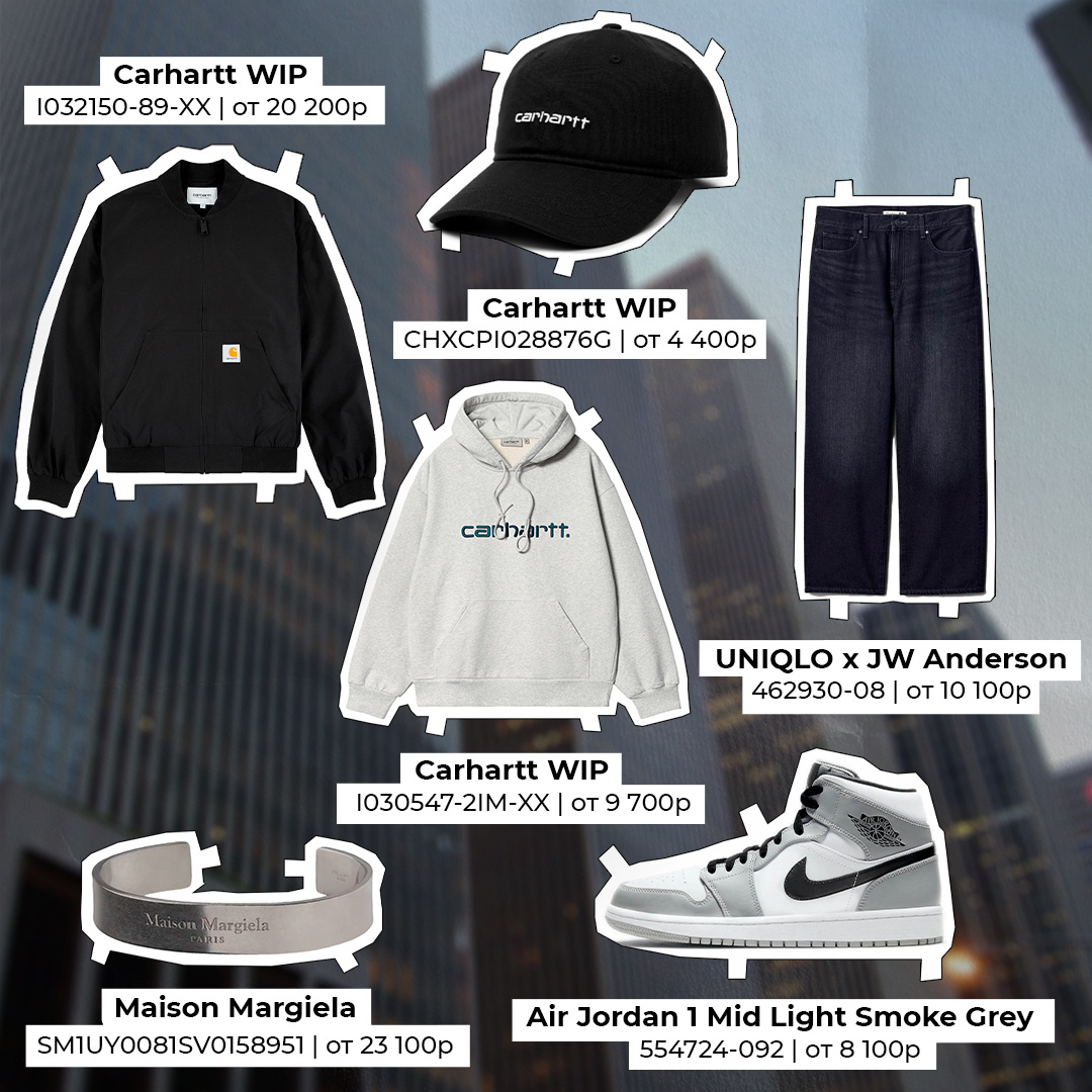 Если фантазии хватает только на джинсы и худи, то мы уже тут как тут. Подобрали для вас образ, в котором до мая ходить захочется. Carhartt WIP, арт. I030547-2IM-XX, цена от 9 700₽* UNIQLO x JW Anderson, арт. 462930-08, цена от 10 100₽* Air Jordan 1 Mid «Light Smoke Grey», арт. 554724-092, цена от 8 100₽* Carhartt WIP, арт. I032150-89-XX, цена от 20 200₽* Maison Margiela, арт. SM1UY0081SV0158951, цена от 23 100₽* Carhartt WIP, арт. CHXCPI028876G, цена от 4 400₽* *стоимость может изменяться в зависимости от курса и размера Больше интересного на нашем сайте POIZON