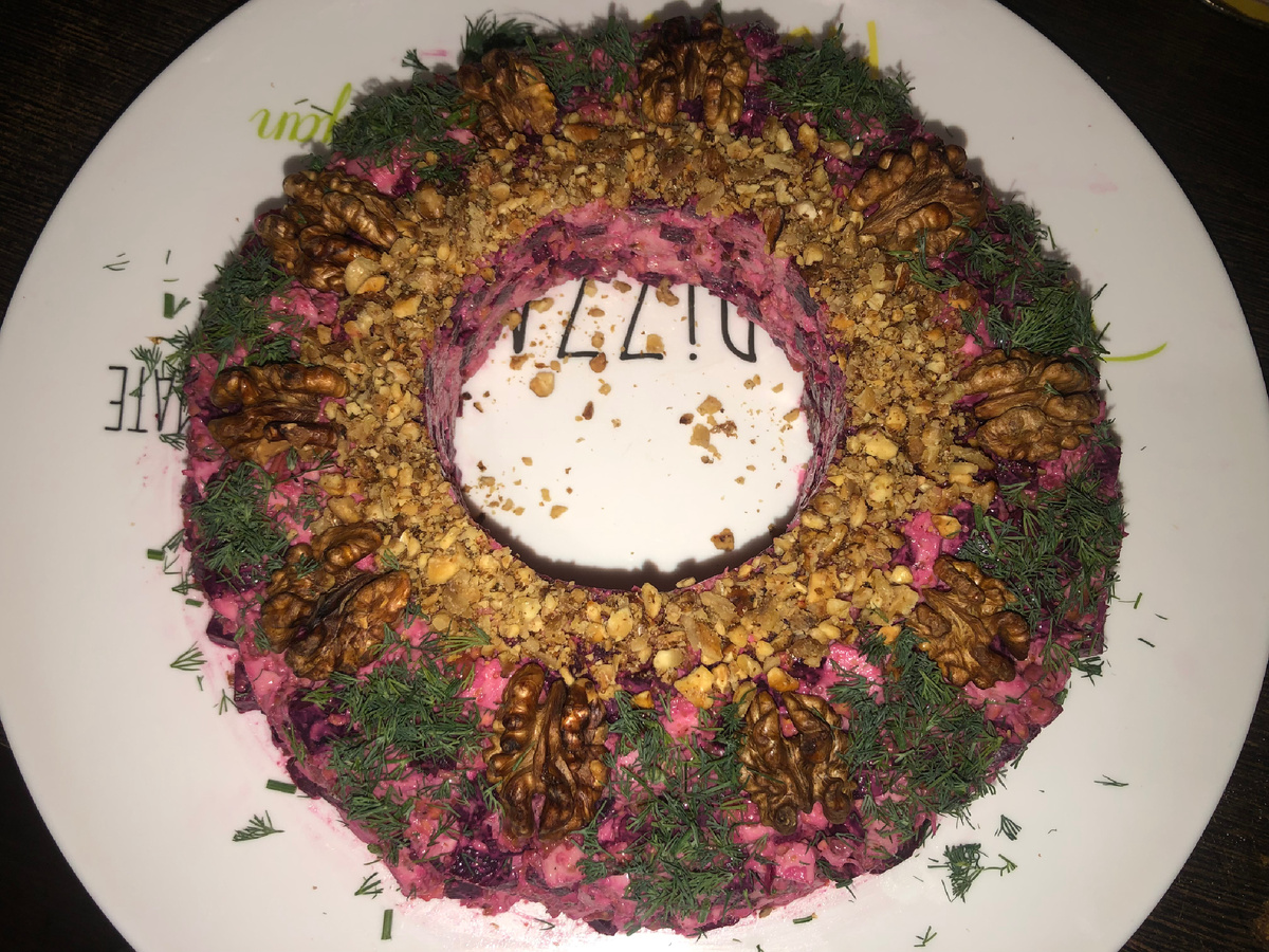 Я уже давно заглядывалась на этот салат, выглядел он на картинках просто потрясающе! Смущала свекла - я ни в каких салатах, кроме винегрета, никогда её не ела и даже не представляла. Но я открыта новому. Тем более, что отзывы на салат в интернете очень положительные. ✅ Грудка куриная копченая - 2 шт ✅ Свекла небольшая - 6-7 шт ✅ Орехи грецкие - 300 г ✅ Чеснок - 1/2 головки ✅ Майонез ✅ Соль и перец по вкусу ✅ Свежий укроп - пара веточек С куриными «сисями» иногда возникает непонимание, 2 шт - это сколько? Это грудка с одной стороны и грудка с другой стороны, и того - две. Или одна цельная грудина от одной птиченьки. С остальным вроде бы всё точно понятно, но, если что - добро пожаловать в комментарии! Салат красивый, необычный и вызывает интерес гостей! На вкус тоже всем понравился. Правда, я теперь им насладиться не могу - вкусы пропали со вчерашнего дня, но я непременно его приготовлю снова! Красивое) Как вам салат, дорогие друзья? Будете пробовать? Поддержите публикацию лайками. Реце