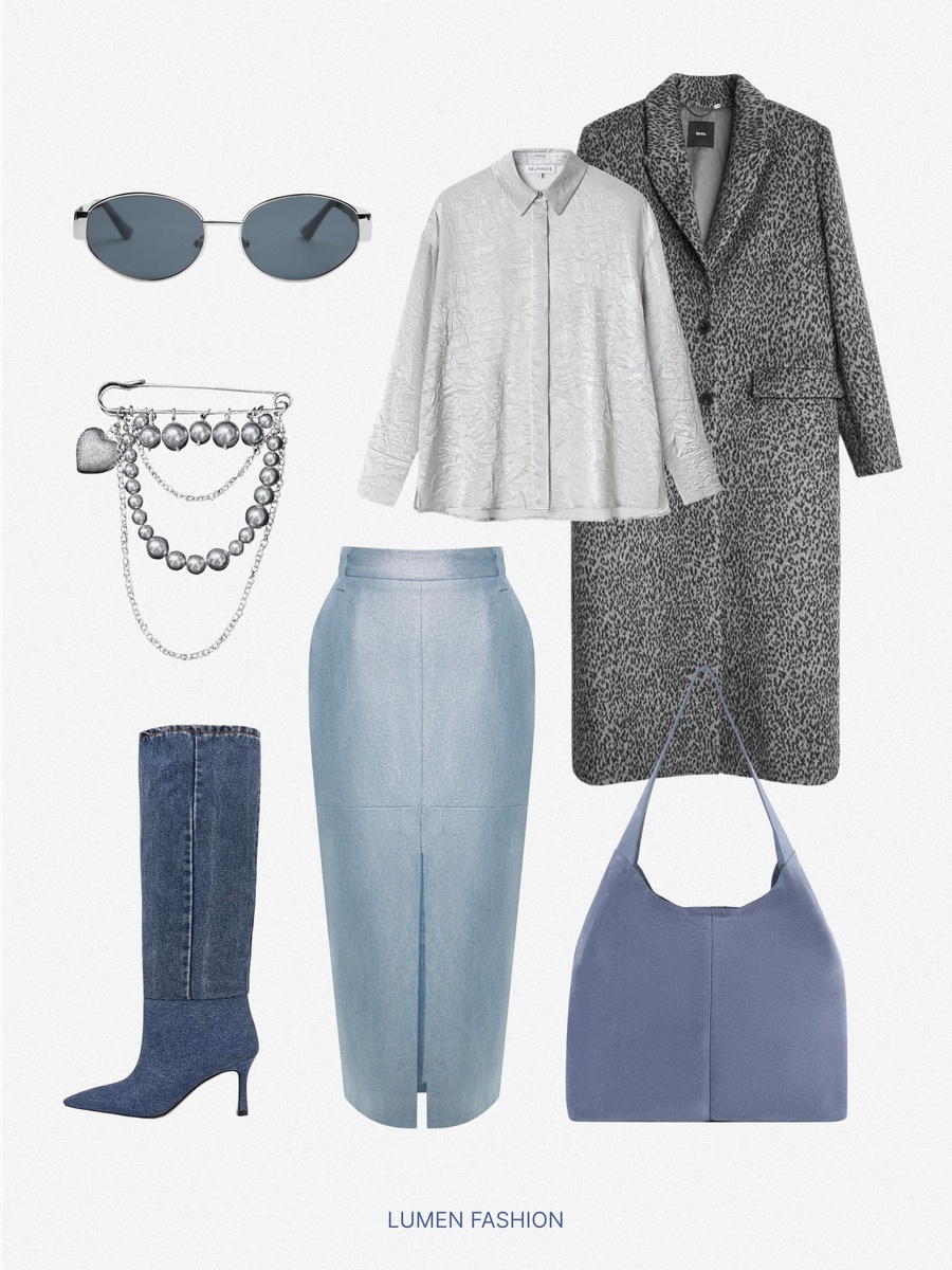 Яркие цвета в одежде — это всегда смело, стильно и современно. Но как сделать так, чтобы образ не выглядел инфантильно или перегруженно? Секрет в балансе, акцентах и умелом сочетании текстур и оттенков. Сегодня мы разберем, как адаптировать яркие краски на примере голубой джинсовой юбки с разрезом и блеском от бренда LUMEN. Этот предмет гардероба станет основой для пяти стильных луков, которые подойдут для разных ситуаций — от офиса до вечеринки. Сочетание голубого с серебристыми акцентами создает эффектный, но не перегруженный образ. Серо-леопардовое пальто добавляет изысканности, а серебристая рубашка подчеркивает блеск юбки. Длинные джинсовые сапоги удлиняют силуэт, а брошь и очки завершают образ, делая его утонченным. Совет: