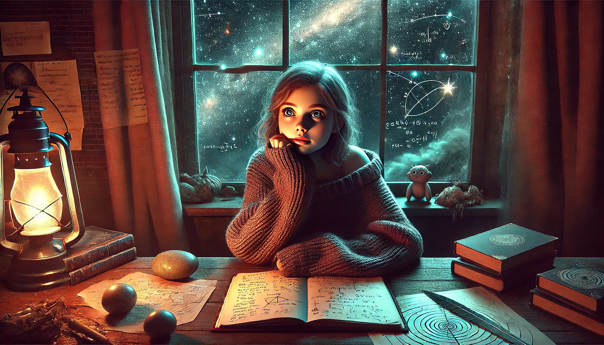 Саша никогда не была похожа на других. Её мысли петляли где-то за гранью привычного, там, где воздух разрежен и где облака не просто клубятся, а несут в себе целые вселенные. Пока другие девочки в классе говорили о блестящих заколках и мягких игрушках, она смотрела на звёзды и мысленно чертила на ладони орбиты далёких планет. — Что, если мы живём в симуляции? — однажды спросила она учителя математики, когда тот объяснял линейные уравнения. Учитель замер на секунду, а потом покачал головой. — Давай пока разберёмся с тем, что точно доказуемо. Но что для Саши было доказуемо? Что мир — это набор кодов, где люди ходят по заранее прописанным траекториям? Что её существование — просто ошибка в этой системе, баг в алгоритме? Её одежда — небрежные свитера, вытянутые рукава, карманы, набитые мелкими артефактами: гладкий камень, клочок бумаги с уравнением, перо неизвестной птицы. Её голос — не громкий, но полный странных слов. Её взгляды — всегда куда-то мимо, будто она ищет там, за горизонтом, т