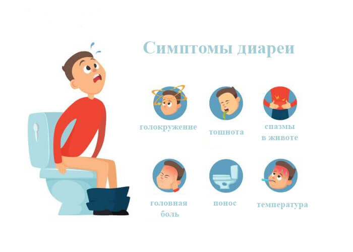 Помимо диареи, основные симптомы – это: