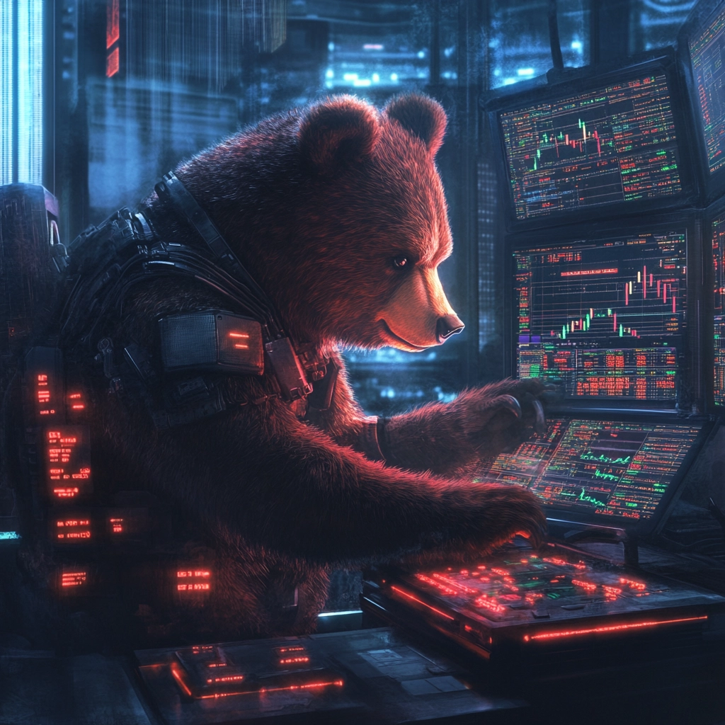 Всем привет! Сделал сегодня несколько рисунков на тему Трейдинг медвежий рынок. Медведей в трейдинге называют продавцов, которые ожидают падения цен на активы. Они зарабатывают на падении рынка, открывая короткие позиции. В терминале торговли красная кнопка SELL, открывает позицию на продажу. Сегодня искусственный интеллект мне помог сделать пару интересных и ярких картинок на эту тематику.