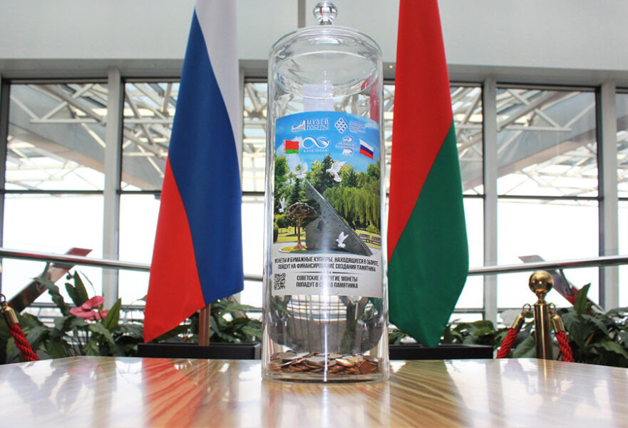 В аэропорту Минск установлена колба для сбора монет на изготовление памятника в Москве