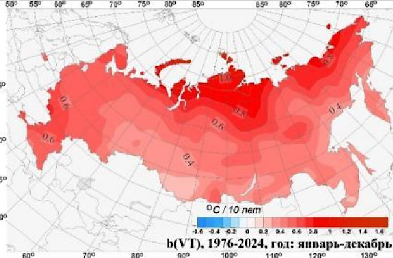 на территории России за период 1976-2024 гг. (oC/10 лет) Федеральная служба по гидрометеорологии и мониторингу окружающей среды (Росгидромет) опубликовала «Доклад об особенностях климата на территории Российской Федерации». Традиционно внимание метеорологов, экологов и других учёных вызвали данные о тенденциях изменений температуры воздуха. Уверены, даные интересны и широкой общественности...