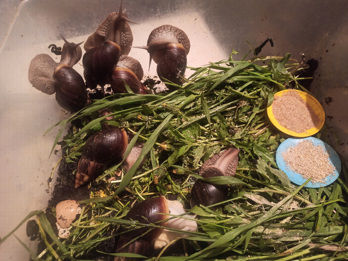 Ахатины - гигантские африканские улитки. Но это вовсе не один единственный вид. Видов улиток довольно много. Половая зрелость и начало яйцекладки зависит от вида, условий содержания и индивидуальных особенностей. Поэтому возьмём несколько усреднённые значения. колеблется в пределах 6-12 месяцев. Точный срок зависит от вида Но готовность к размножению определяется не только возрастом. У них очень важным критерием является размер раковины. Улитки начинают кладку, когда длинна раковины достигает 10-12 см. Более мелкие размножаются крайне редко. Подробнее о кормлении улиток я писала здесь ⬇️ Ахатины - гермофрадит и некоторые из видов , например ахатина фулика, способны к самооплодотворению. И все же это происходит реже и уже тогда, когда животные более старшего возраста. В большинстве своем , для размножения улиткам нужен партнер. Чаще всего от 50 до 100, но иногда может достигать и 200-300 штук. После первой кладки делать улитки это будут регулярно, примерно раз в 1-2 месяца