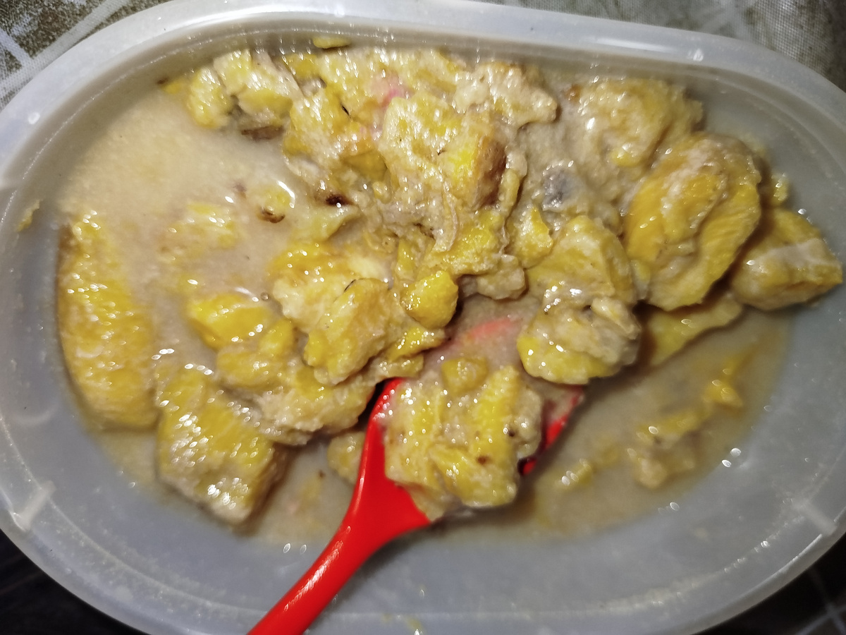 Вечерний приëм пищи в Рамадан должен начинаться со сладкого блюда или напитка. Один из вариантов - это колак. Чем-то напоминает компот. Готовится из бананов, уби и очищенных плодов арен (сахарной пальмы) с пальмовым с сахаром (сахар арен), можно положить туда тыкву. Есть вариант с нанкой и корнем синкона, но я такой не пробовала. Рецепт: Некрупно нарезать бананы, жëлтый уби и/или тыкву (всего этого вместе на полкило). Положить туда 100 граммов плодов сахарной пальмы, два средних кружочка пальмового сахара, добавить сахарного песка по вкусу (можно досыпать, если готовый колак вдруг покажется не слишком сладким). Можно добавить листик пандана, можно не добавлять, он для аромата, всë равно не съедобный. Налить около литра воды и 400 мл сантана. Можно без сантана, но тогда воды надо чуть больше. Варить 20 минут на среднем огне, пока уби не станет мягким. Колак вкусный и тёплым, и холодным. Ещё я люблю готовить курицу криспи. Это очень просто и вкусно. Куски курицы надо обвалять в