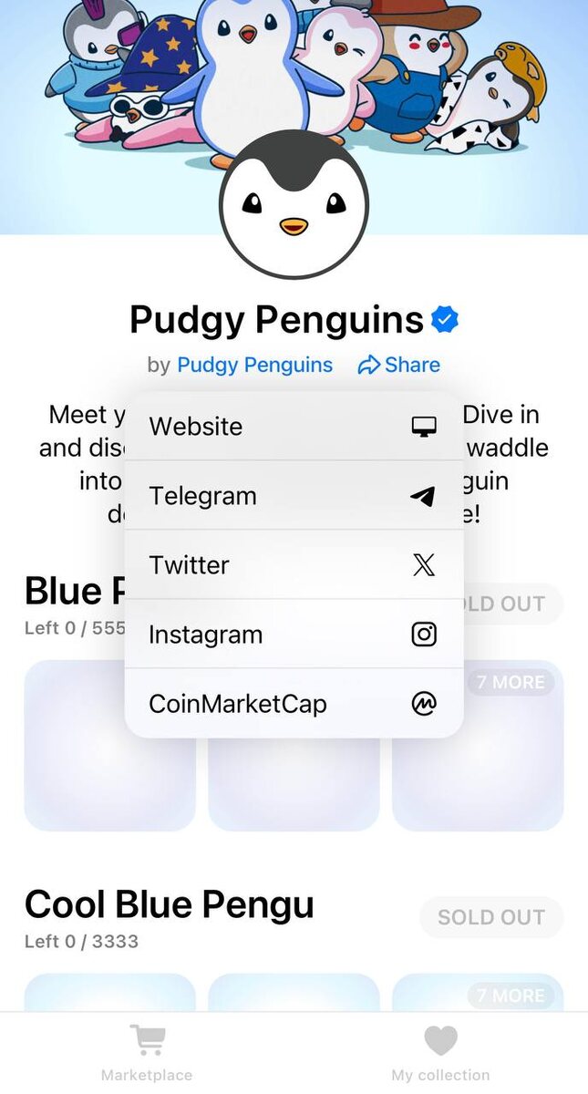 Важные люди продолжают пушить свои стикеры (обезьяны 📉пингвины 🩷) @sticker_bot судя по всему готовится к апдейтам и запуску долгожданного минта и торговли вчера вышло обновление страниц коллекций, изменили дизайн и добавили ссылки на соц. сети тех, кому они принадлежат Оставшиеся коллекции 👉 тут
