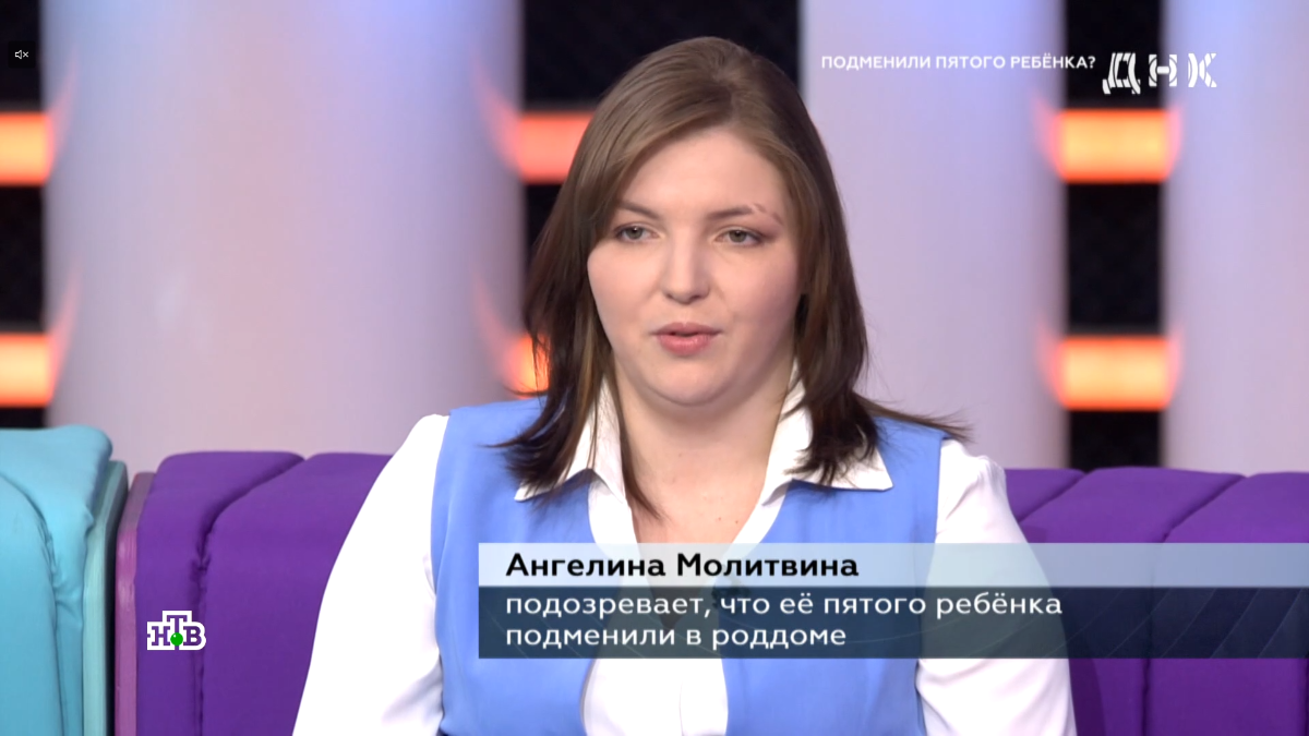 История 24-летней Ангелины Молитвиной из Волгоградской области, ставшая центральным сюжетом ток-шоу «ДНК» на НТВ, вскрыла системные проблемы в перинатальной диагностике. После четырех успешных кесаревых сечений Ангелина родила пятого ребенка — дочь Софию, которой сразу поставили диагнозы: врожденный порок сердца и синдром Дауна. Результаты ДНК-теста, проведенного в прямом эфире, подтвердили родство, но не сняли вопросов к медикам, пропустившим патологии во время беременности. Скриншот телеэфира НТВ. Программа ДНК. "Подменили пятого ребенка?"