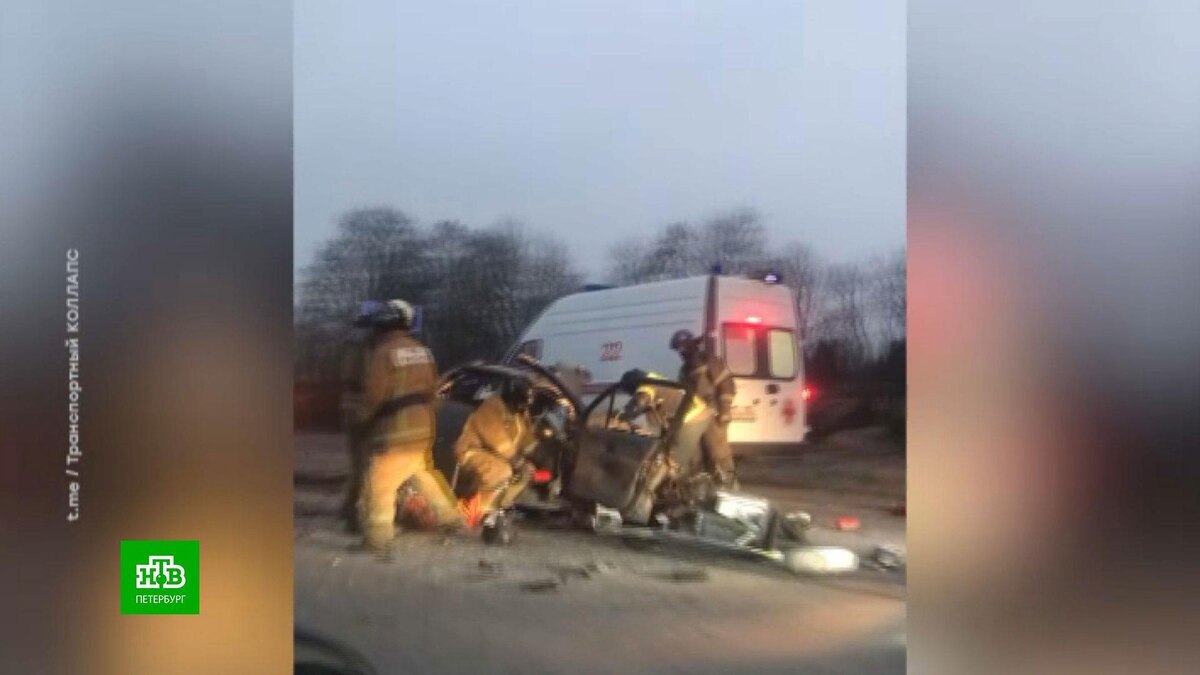 [ Смотреть видео на сайте НТВ ] Дорожная полиция расследует обстоятельство смертельного ДТП, которое произошло этим утром в Ленинградской области. На 12-м километре трассы Гатчина — Ополье недалеко от въезда в деревню Большие Борницы Daewoo Matiz столкнулась с автобусом. В результате аварии автомобиль буквально смяло и разорвало на части, а двигатель вылетел из кузова на проезжую часть. Водитель погиб на месте, а его пассажир получил тяжелые травмы. Как уточнили в региональном ГУ МВД, 64-летний водитель автомобиля Daewoo Matiz при обгоне лесовоза с полуприцепом совершил с ним касательное столкновение, а после выехал на встречку, где встретился с автобусом. Пассажиров в салоне не было. В финале «кореец» столкнулся с попутной «Ладой». Другие участники этого ДТП травм не получили. Зато пострадавшего пассажира виновника аварии доставили в Гатчинскую клиническую больницу, где прооперировали. Сейчас его жизни ничего не угрожает. [ Смотреть видео на сайте НТВ ]