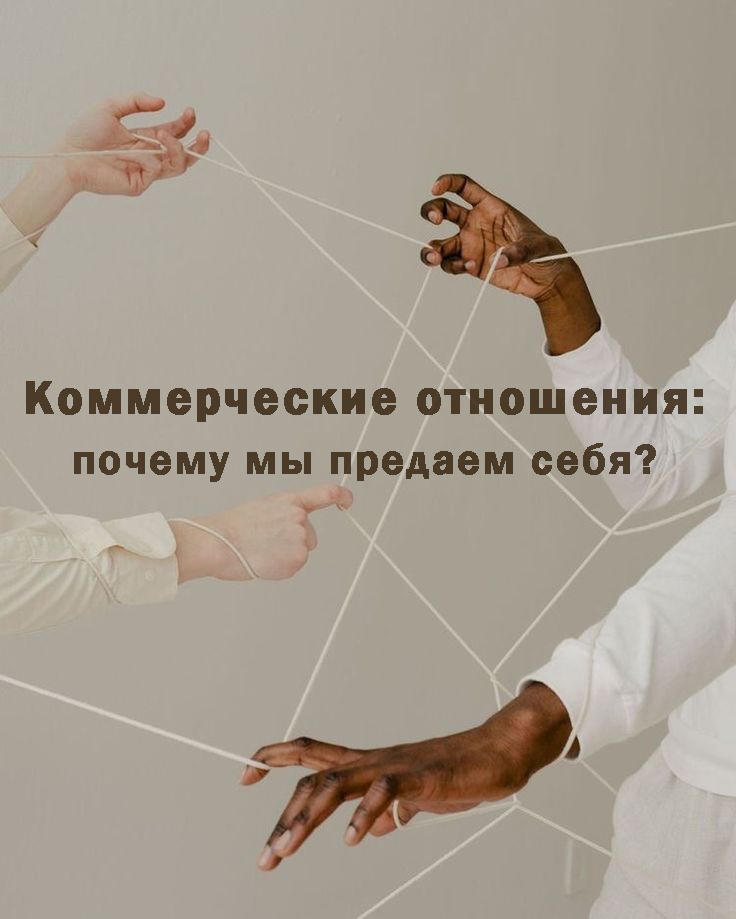 Коммерческие, или корыстные, отношения – это ситуации или взаимодействия, когда человек «предает» себя ради каких-то внешних благ, проявленных или непроявленных, отступая от собственных ценностей и своих внутренних убеждений, соглашается поддерживать отношения, которые на самом деле претят ему.