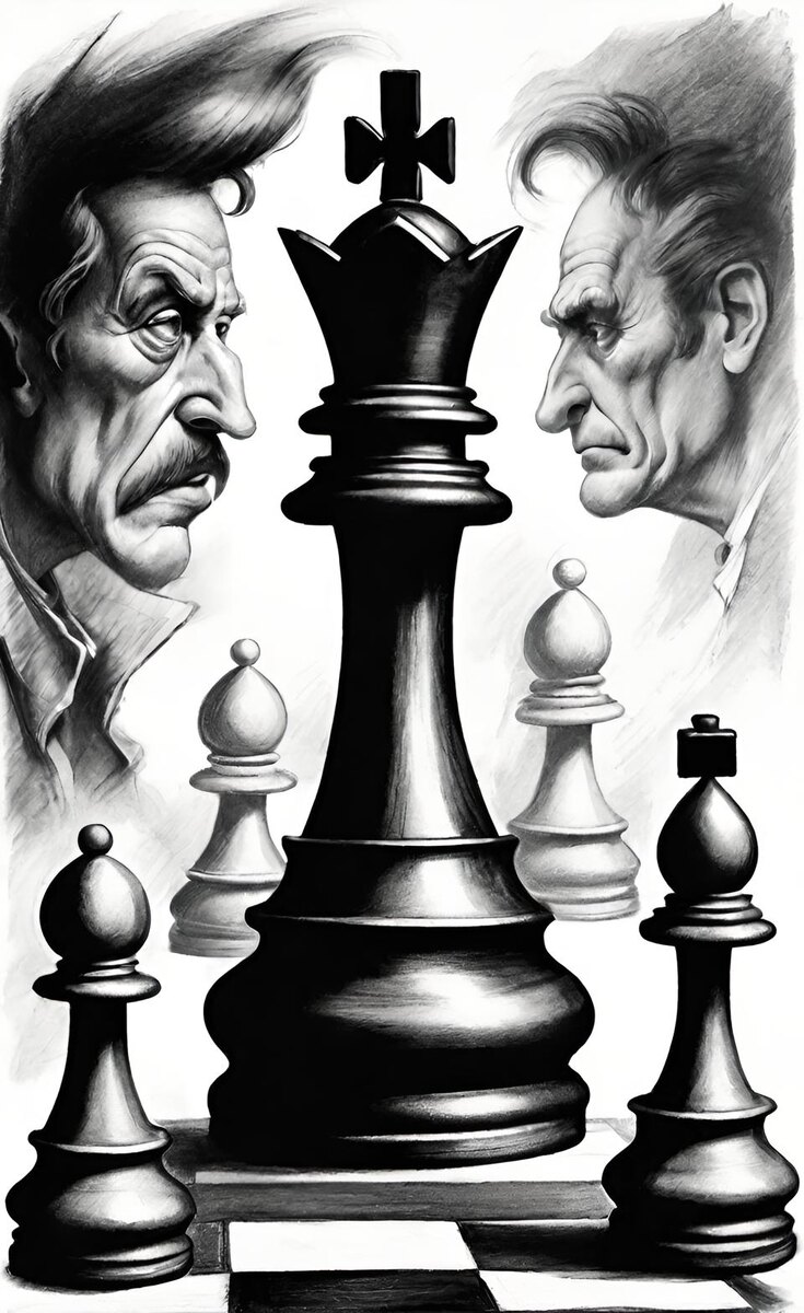 Андрей смотрел на шахматную доску, на этот символ его поражения. На фигуры, застывшие в безмолвном танце триумфа и трагедии. Взгляд зацепился за Чёрного Короля, возвышающегося над поверженным Белым.