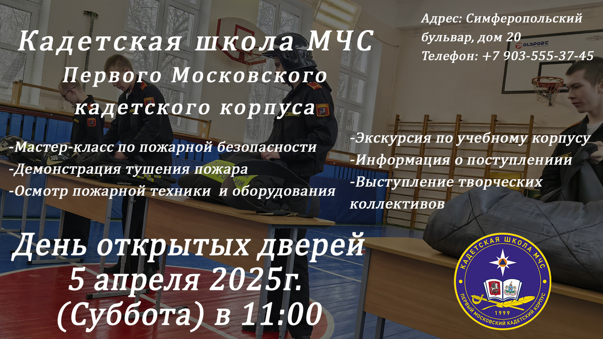 ✨ 5 апреля в 11:00 вас ждет насыщенная программа, которая позволит вам окунуться в захватывающий мир пожарной безопасности и познакомиться с жизнью кадет. 🚨Мастер-класс по пожарной безопасности Узнаете основные правила, которые могут спасти жизнь, познакомитесь с приемами тушения пожаров и узнаете, как действовать в чрезвычайных ситуациях. 🔥 Демонстрация тушения пожара Увидите захватывающее зрелище - реальные методы борьбы с огнем, которые используются профессиональными пожарными. 🚒 Знакомство с пожарной техникой и оборудованием Оцените мощь современной техники, предназначенной для борьбы с пожарами, познакомитесь с экипировкой пожарных. Сможете задать вопросы и даже примерить некоторые элементы. 🏫 Экскурсия по учебному корпусу Пройдете по классам, где учатся кадеты, увидите, как организован учебный процесс. Узнаете, как проходит обычный день кадета. ℹ Информация о поступлении Получите исчерпывающую информацию о правилах приема в школу, о необходимых документах, требован