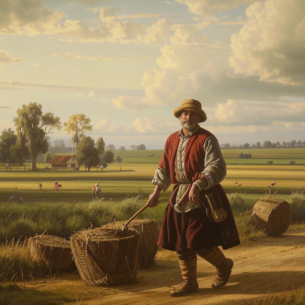 В одном небольшом селе, затерянном среди густых лесов, жил простой крестьянин по имени Иван. Он был человеком трудолюбивым и честным, но порой судьба испытывала его на прочность. Однажды осенью, когда дни стали короче, а ночи длиннее, Иван отправился в лес за дровами. Лес был старым и мрачным, и местные жители рассказывали о нём разные истории, полные таинственных существ и странных явлений. Иван знал эти рассказы, но никогда не придавал им особого значения. Однако в тот день, когда он углубился в чащу, всё изменилось. Сначала он услышал странные звуки — шорохи и тихие голоса, словно кто-то шептал ему вслед. Затем ветер усилился, и деревья начали раскачиваться, несмотря на то, что погода была спокойной. Иван попытался не обращать внимания на эти странности и продолжал рубить дрова. Но вскоре он обнаружил, что потерял дорогу обратно. Каждый путь, которым он пытался выйти из леса, приводил его обратно к тому же месту, где он начинал. Иван начал нервничать, понимая, что ночь близка, и ск