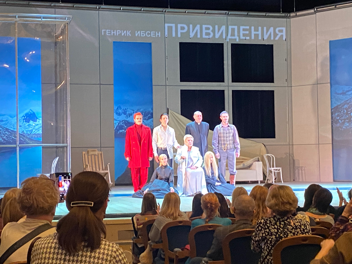 Здорово, что в постановках петербургских театров по-прежнему можно увидеть звезд советского театра и кино. Например, на спектакль «Привидения» в Большом драматическом театре нужно идти хотя бы ради того, чтобы насладиться актерской игрой Светланы Крючковой. Пьесу «Привидения» написал норвежский драматург Ибсен аж в 1881 году. И, по одной из версий, он посвятил ее стремительно исчезавшим в Норвегии того времени традициям старой буржуазии. Больше всего то, что я увидел на сцене БДТ в спектакле «Привидения», было похоже на произведения Чехова — много разговоров, рефлексий и минимум действия. Видимо, режиссер постановки БДТ Роман Мархолиа, понимая, что пьеса современному российскому зрителю скучна, решил внести в спектакль разнообразие с помощью спецэффектов. Во-первых, почти всю постановку по сцене разгуливает одно из привидений, о которых идет речь в названии пьесы — умерший муж главной героини в образе Джокера в исполнении Джареда Лето. Добавляют постановке экзотики и персонажи, разъе