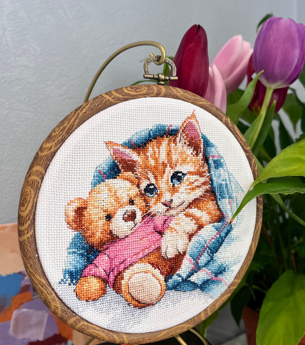 Привет, друзья 🎈 Радую себя и вас 😂 с завершением работы. Какой же всё-таки милый получился этот котейка.🐈 Славный рыжик. Наборчик хоть и теплый и уютный, оказался достаточно трудоемким в процессе. Последние крестики давались тяжело. Но результат того стоит ☺️ Любуюсь. И продолжаю кота с рыбками ,мимолетно окидывая взглядом новые наборы 😆