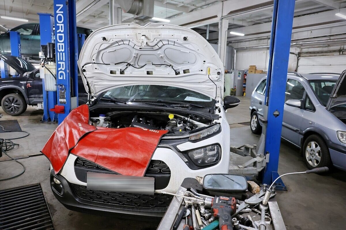 — Перед нами Citroen C3 2021 года, под капотом — 1.2 PureTech, работающий в паре с «механикой», — рассказывает Павел, подготавливая автомобиль к сливу моторного масла. — Машина приехала на замену комплекта ГРМ, чем мы, собственно, сейчас и займёмся. Пробег составляет почти 87 000 км.