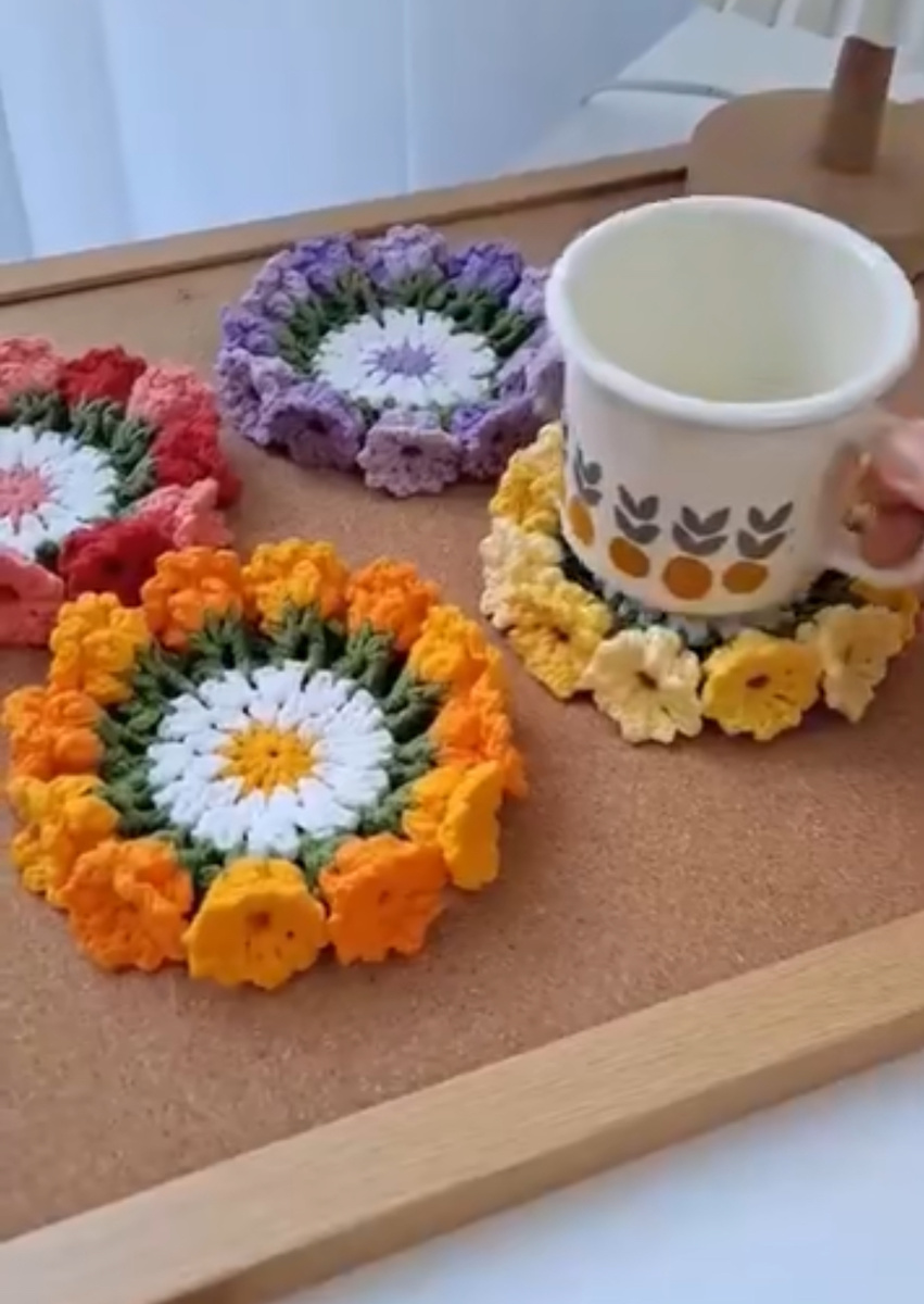 Целый день вчера вязала! Нет, не только вязала, но и дела домашние делала. И обед приготовила, и поубиралась немного, аквариум помыла, а мысли были повязать! И декор к Пасхе достала, люблю дом украшать к празднику. А пока искала зайчиков и курочек нашла интересное видео , как связать красивую подставку под чашку. И прямо к весне, по краю идут цветы, связанные крючком, пышными столбиками. Видео было короткое, но очень понятное! И я тут же попробовала связать! Получилось 😉 А к вечеру я уже связала 4 штуки! Они такие красивые, что я даже спать не могла, сидела до полуночи, не могла оторваться 😃😃 И потом у меня рабочий вариант —метод тыка, используется когда нет схем или видео. Особенно если видео короткое, то нужно несколько раз посмотреть и записать каждый ряд. И от толщины ниток будет зависеть насколько крупным будет цветок. Поэтому я связала одну подставку из хлопковых, тонких ниток. Но мне больше понравилось из акрила, только не очень толстые нитки должны быть, а цветы полу