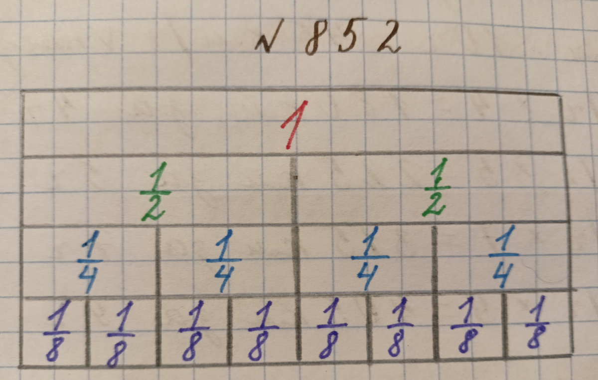 Арифметика 4 класс Пчёлко. Урок 107. Дроби со знаменателями 2, 4, 8. (N852-856)