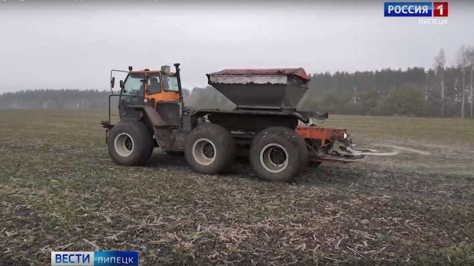 Забота о будущем урожае. Аграрии региона вышли в поля для подкормки озимых. Природа испытывает их на прочность. Засушливое лето и бесснежная зима сильно ослабили растения. Поэтому специалисты в этом году решили вносить азотные удобрения дважды. Живые, но сильно ослабленные. Так можно сказать сейчас об озимых культурах. На будущем урожае сказались аномалии прошлых сезонов — засушливые лето и осень, бесснежная зима. Из-за отсутствия влаги растения взошли с сильным опозданием. Чтобы растения колосились в полную силу — им необходима витаминная подкормка. Сейчас аграрии вносят на поля аммиачную селитру. В дозировке 1,5 центнера на гектар. Удобрение даст силу растениям для роста вегетативной массы. Азотные удобрения на поля в этом хозяйстве вносит вот такой разбрасыватель. Это отечественная разработка — «Туман». Правда, здесь за ним давно закрепилось более возвышенное имя — луноход. Ездит он на шинах низкого давления, поэтому нагрузка на почву — минимальная. Захватывает сразу более 20 метров