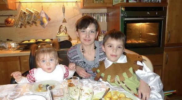 Hi, this is my family. Little me with my mother Olga and my brother Denis. My father Alexander isn't there, because it's his photo! Denis usually plays on the computer and works with our father. My father works in a factory. My mother sometimes rides horses. I study at school. We live in Dmitrov.