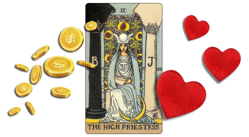 Посмотрим, что означает Жрица в раскладах на чувства и перспективу отношений. Жрица – это завеса тайны. На прошлом уроке, разбирая общие значения карты, мы говорили о том, что, когда выпадает Жрица это, как правило, означает, что в деле, которого касается вопрос, все не так просто, есть скрытые подводные течения, не очевидные на первый взгляд. Все это справедливо и для раскладов на любовь и работу. Любит он или как? Что можно сказать совершенно точно, так это то, что он сам свои чувства бы раскрывать не хотел. Поэтому надо анализировать Жрицу вместе с другими картами расклада, чтоб разобраться с чувствами. Иногда бывает, что человек боится быть отвергнутым, быть использованным, поэтому раньше времени не раскрывает чувства. Это естественно, это понятно, что, обжегшись на молоке, на воду дуешь. Но иногда человеку действительно есть, что скрывать. Чаще всего параллельные отношения он скрывает. Поэтому, увидев Жрицу в раскладе на чувства, надо сразу же делать дополнительный расклад, просто