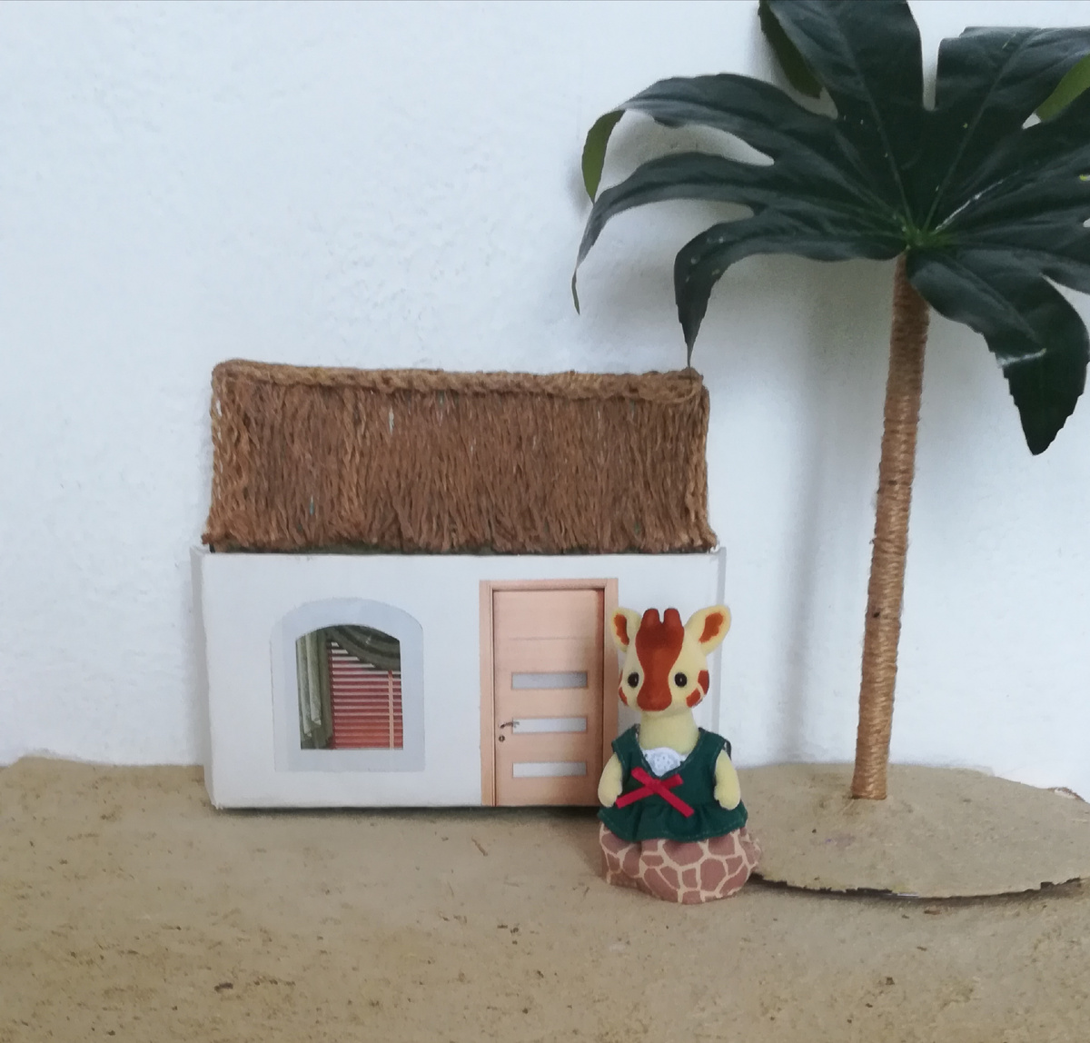 На 8 Марта я захотела сделать своими руками подарок для старшей дочери. Я сделала ещё один мини-домик. На 8 Мата я захотела сделать своими руками подарок для старшей дочери. Это домик, в котором будет жить девочка жираф Sylvanian Families. Я, к сожалению, не всё успела закончить к 8 Марта. Поэтому решила подарить как есть. А потом буду доделывать разные мелочи и делиться с Вами своими идеями. Домик я сделала из картона и бумаги. В ход пошло всё, что было в закромах: коробки, цветной картон, скрапбумага обои, вырезки из журналов и даже корочка от тетради. Окно сделано из крышек от упаковок влажных салфеток и прозрачного пластика. А крыша из верёвки. Домик расположен у моря. Поэтому в нём всё такое яркое, солнечное. Он совсем крошечный, но в нём будет всё необходимое для жизни жирафика. Часть предметов в домике фабричного производства. Это стул и кровать с постельным бельём. Я сшила дополнительные подушки и матрас. Остальные предметы в домике я сделала сама. Это мини-кухня, сто