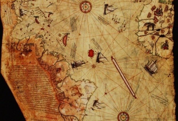Карта Пири Рейса, османского адмирала и картографа, была случайно обнаружена лишь в 1929 году во дворце Топкапы в Стамбуле. До наших дней сохранился лишь фрагмент оригинального произведения — часть, охватывающая Атлантический океан и побережья Европы, Африки и Южной Америки. Сам Пири Рейс написал на карте, что он составил ее на основе многих более древних источников, включая восемь греческих карт времен Птолемея, четыре португальских, одну арабскую и карту Христофора Колумба.