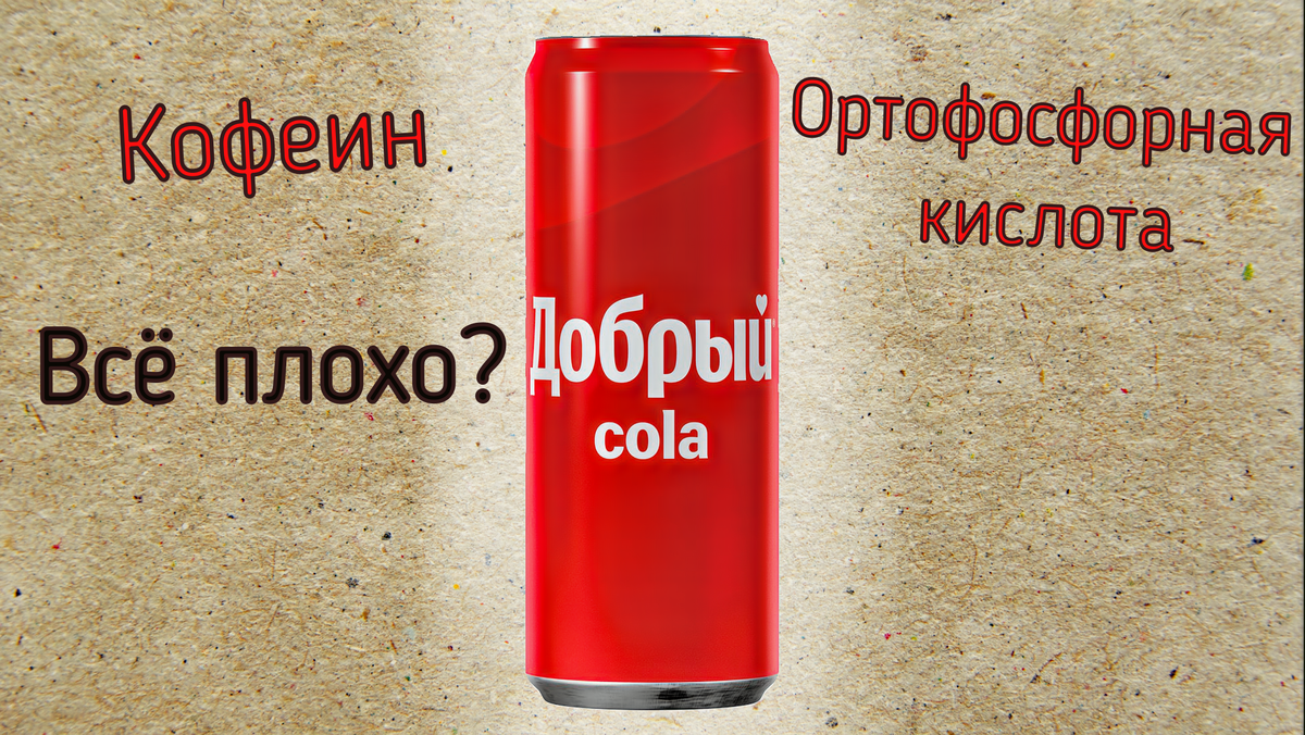 Coca-cola самый распространенный газированный напиток. Очень много людей, которые любят и пьют этот напиток, но при этом существует очень много противников газированных напитков (в том числе и я). В этой статье мы разберём состав напитка "Добрый Cola". Индигриенты: Итак, начнем разбор состава: В продуктах питания производитель обязан начинать состав с ингредиента, которого больше всего в этом продукте и идти по убыванию. 1. Очищенная вода — 2. ❌Сахар — сахара в этом напитке очень много, он очень сильно вредит организму. Из-за преизбытка сахара может развиться множество болезней (некоторые из них неизлечимые), например, сахарный диабет, ожирение. 3. ❌✔Краситель сахарный колер IV — однозначного мнения на этот краситель нет, некоторые считают его безвредным, другие - опасным. 4. ❌✔Регулятор кислотности ортофосфорная кислота — считать этот продукт безвредным нельзя, но он разрешён во всех странах. На сегодняшних день нет информации о пользе этого вещества. Постоянно употреблять продукты с