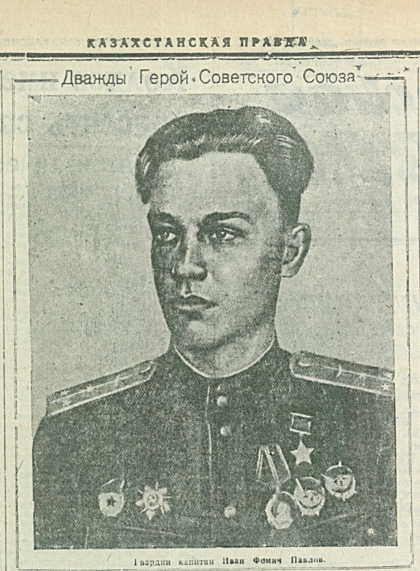 Для справки: Иван Фомич Павлов (родился 25.06.1922 в селе Борис-Романовка, Кустанайской губернии) — командир звена 6-го гвардейского штурмового авиационного полка 3-й воздушной армии Калининского фронта; командир эскадрильи 6-го гвардейского штурмового авиационного полка 3-й воздушной армии 1-го Прибалтийского фронта, дважды Герой Советского Союза, майор (1948). Иван Павлов погиб 12 октября 1950 года, выполняя ночной учебно-тренировочный полёт на штурмовике Ил-10