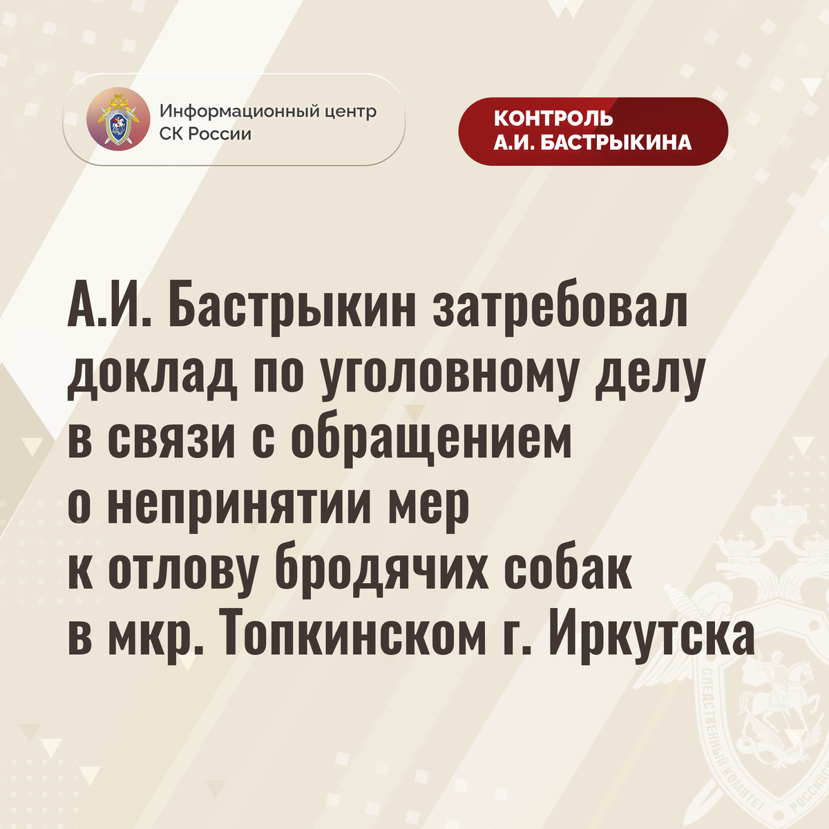 А.И. Бастрыкин затребовал доклад по уголовному делу в связи с обращением о непринятии мер к отлову бродячих собак в мкр. Топкинском г. Иркутска