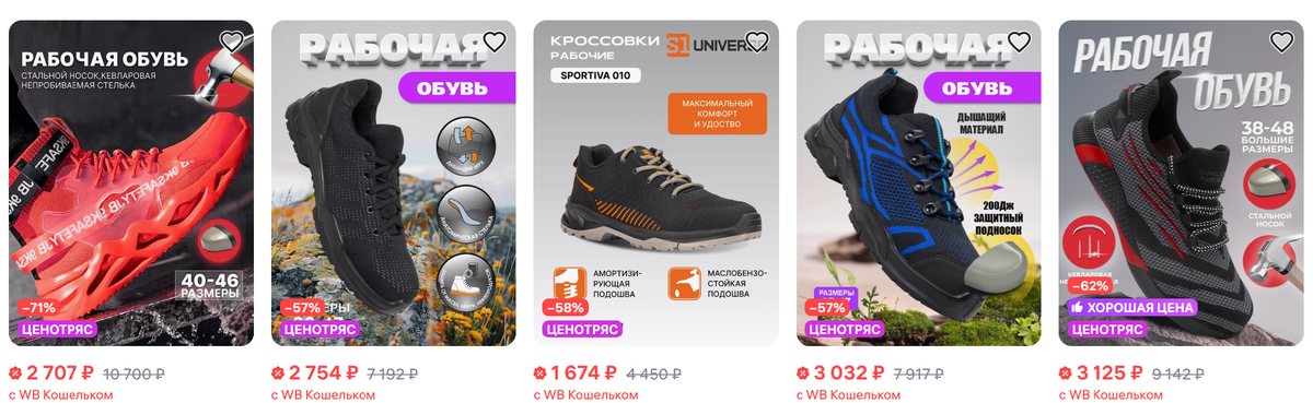 Цена. Цена на спецобувь должна быть разумной. Нет смысла переплачивать, но в то же время, если вы заметили, что цена слишком низкая, на уровне повседневной «одноразовой» обуви, то это повод задуматься, какое качество и защиту вы получите. Сегодня средние цены на рабочие кроссовки находятся в диапазоне от 2,5 до 5 тысяч рублей, более дорогую продукцию предлагают европейские бренды. Если рабочие кроссовки стоят в продаже по цене менее 2 тысяч рублей, то это вряд ли достойная спецобувь. (Цены актуальны на 12 марта 2025 г.)
