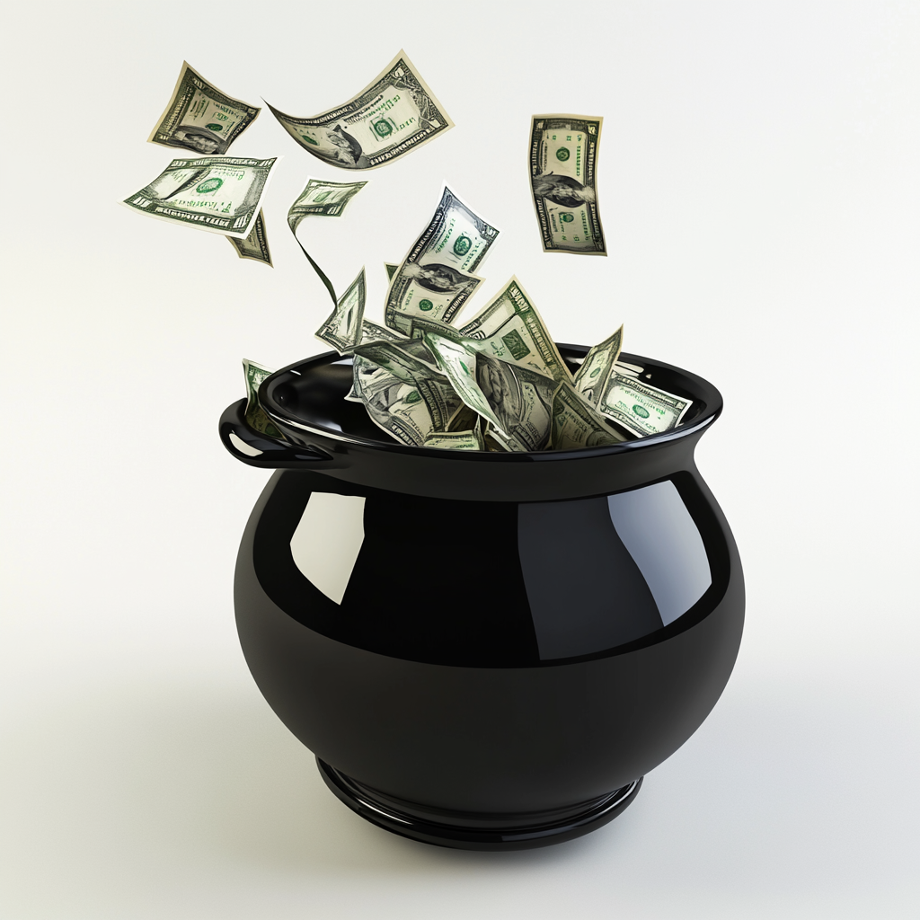 В основе — простая, но глубокая метафора: открытый сосуд, в котором собираются денежные символы, создающие постоянный поток изобилия. В отличие от запечатанных банок, чаша даёт энергию свободному течению. Вы можете прикасаться к её содержимому, добавлять новые элементы, обновлять намерение и поддержку заклинания.