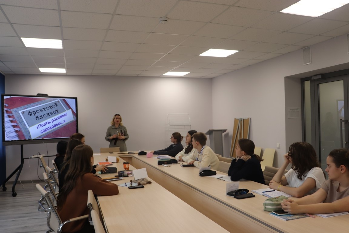 Истёртые, иногда трудно читаемые листы, сшитые между собой в маленькую книжицу размером с ладонь, хранили солдатские рисунки, заметки и… стихи. Иным суждено было сохраниться только в семейных архивах, где их листают с осторожностью, а читают иногда с лупой - в таком они ветхом состоянии. Иным же – стать достоянием литературы. Сотрудники нашей библиотеки рассказали ученикам гимназии им. Н.М. Пржевальского и лицея им. Кирилла и Мефодия о такой детали военного быта, как фронтовой блокнот. Ребята «полистали» фронтовые блокноты поэтов Константина Симонова, Давида Самойлова, Сергея Орлова, Семена Гудзенко, Михаила Авилова, Александра Твардовского, услышали их стихи о роковых сороковых. Как живые весточки минувшей войны, фронтовые блокноты обращают взгляды каждого из нас в глубины истории. Пронизанные страданием и пропахшие порохом, они несут в себе свою, жизнеутверждающую философию любви - к тишине, весне, родным, Родине, миру и к жизни в целом.