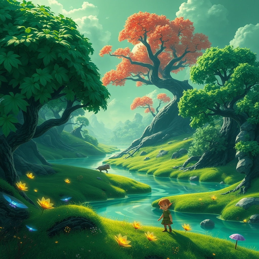 В далекой галактике существовала планета, которую жители звали Элир. Этот мир был уникален, ведь на его поверхности растительность сверкает всеми оттенками зеленого. Леса из гигантских деревьев с листьями как изумруды, луга, усыпанные мягким мхом, и реки с кристально чистой водой, отражающей небесно-зеленый цвет — все это создавало атмосферу волшебства. Главной героиней нашего рассказа была маленькая эльфийка по имени Лира. С раннего детства она восхищалась красотой своего мира. Каждый день она гуляла по лесам, собирая удивительные цветы и играя с лесными существами. Лира могла общаться с природой; деревья шептали ей свои тайны, а цветы делились историями о том, как они расцвели. Однажды, прогуливаясь по лесу, Лира наткнулась на необычное дерево. Его кора была не зеленой, а черной, а листья — ярко-красными. Это дерево выделялось на фоне остальной зелени, и Лира почувствовала, что оно необычное. Подойдя ближе, она заметила, что вокруг него царила тишина — даже птицы замерли в ожидании