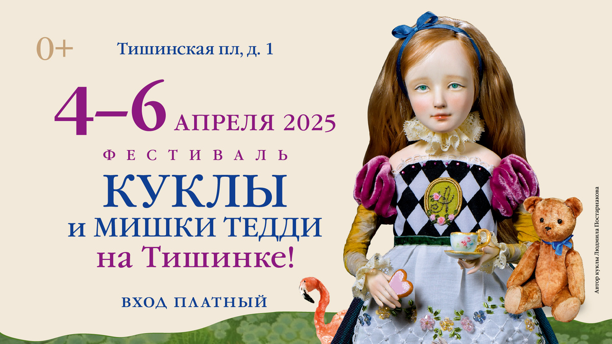 4-6 апреля на Тишинке пройдет выставка Куклы и мишки Тедди на Тишинке - Mosfair Куклы зовут на праздник творчества и красоты! Вас ждут приключения и удивительные события. На одной площадке вы сможете увидеть авторские куклы, рожденные фантазией талантливых современных художников-кукольников, нестареющие Барби, Блайз, Тильды, куклы-младенцы реборны, театральные марионетки и куклы в стиле гиперреализм. Не забыты и мишки: серьезные Потапычи и забавные Косолапые из мультфильмов и сказок, мишки Тедди из музейных коллекций и крошечные мишки высотой всего один сантиметр, мохеровые и плюшевые, с классическим дизайном и крейзи медведи, винтажные и современные. Выставка подкупает своей атмосферой волшебства, уюта и приключений. Здесь винтажные предметы и куклы из детства мам и бабушек в разделе «Антик & винтаж» соседствуют с новинками, впитавшими в себя всю палитру новых технологий. Специальным проектом выставки станет бесплатная квест-экскурсия «Приключения Алисы в стране кукол», которая буд