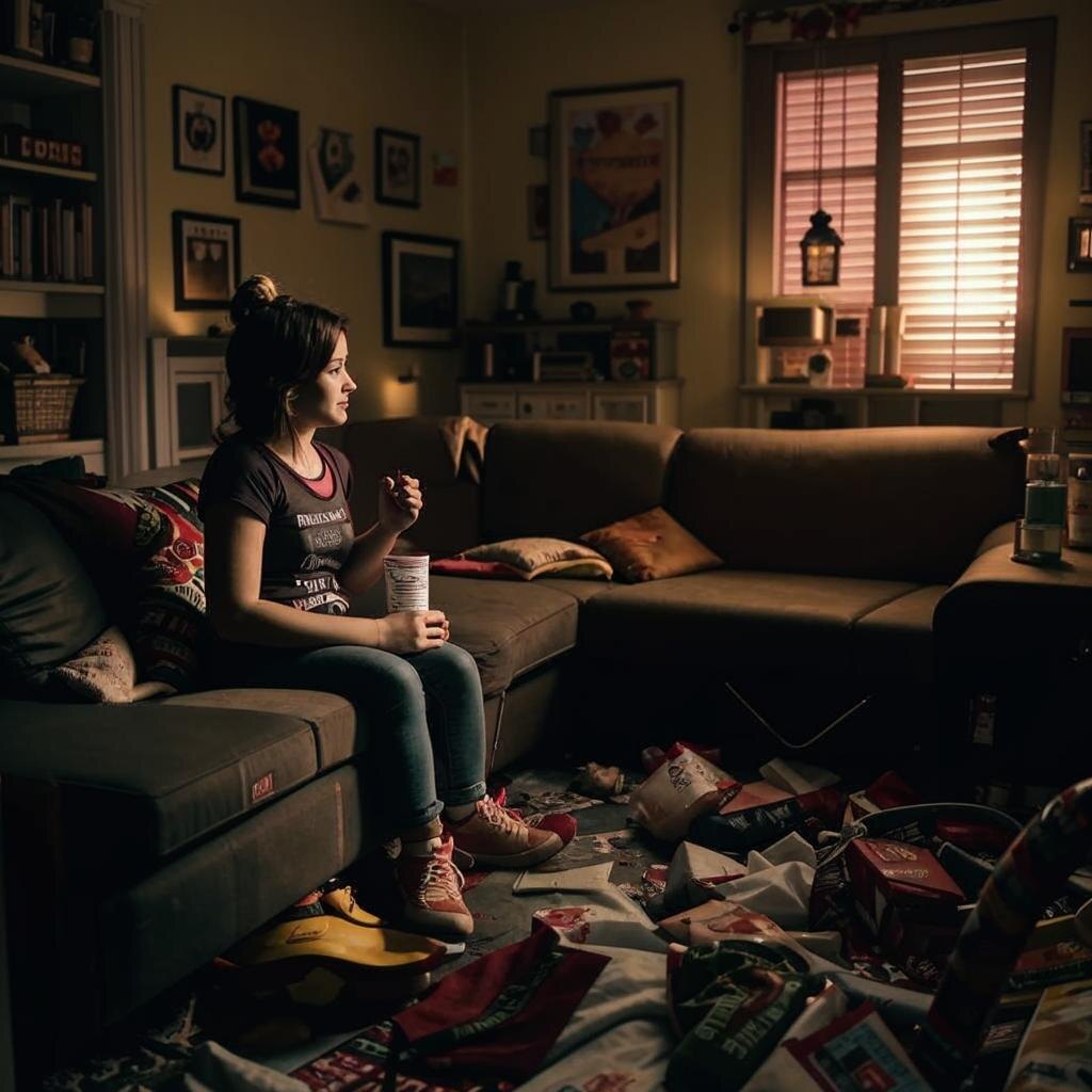 — Привет, — сказала она, стараясь сдержать гнев. Её девятнадцатилетняя дочь сидела на диване, окружённая разбросанными вещами, а рядом стояла тарелка с недоеденной едой.
