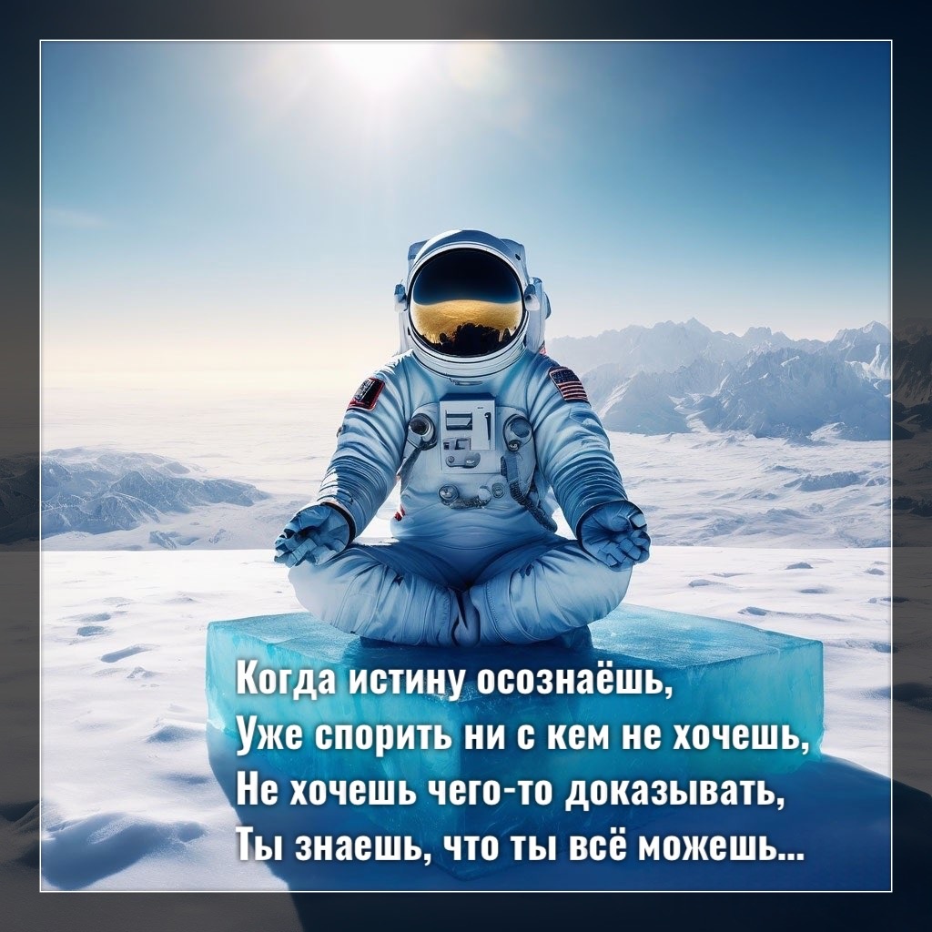 Когда истину осознаёшь, Уже спорить ни с кем не хочешь, Не хочешь чего-то доказывать, Ты знаешь, что ты всё можешь, Спокойно проходишь свой путь, От Души, не вредя кому-то, Кто-то считает, ты глупый, Кто-то подумает - Будда, А кто-то продолжит жить, Тебя даже не замечая, Главное то, что внутри, У Души ни конца, ни края, И когда понимаешь это, Начинаешь тихонько следить За тем, как падают листья, Как солнце зовёт дружить, Как люди, в беду попадая, Считают это «концом», А Сверху на всё смотрит Бог С добрым и светлым «лицом», Даря ещё больше возможностей Уроки свои проходить, Карму свою развязывать, Хорошее находить Во всём, что с тобой случается, Подсказки всё время давая, Всё здесь когда-то закончится, Душа живёт, не умирая.