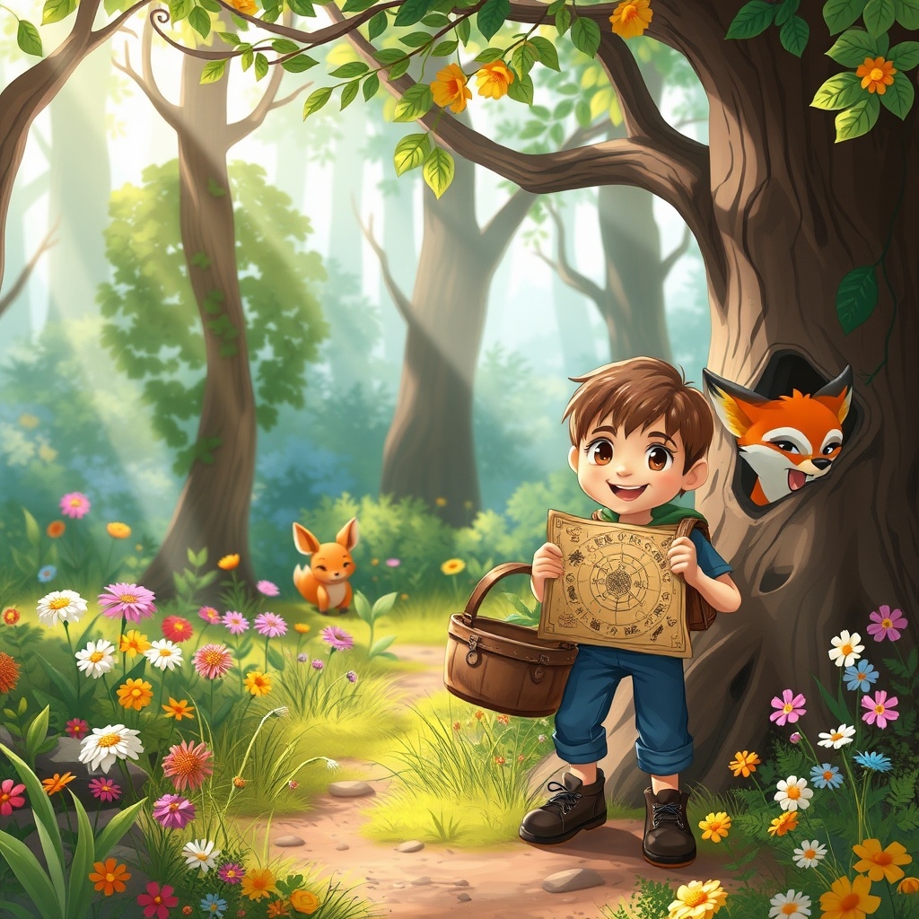 Однажды, когда весна только начинала распускать свои яркие цветы, Катенька решил отправиться на прогулку в лес. Ему казалось, что в лесу много интересного, и он собирался найти что-то необычное. "Сегодня я найду сокровища!" — с энтузиазмом подумал он и, взяв с собой старую корзину, отправился в путь.