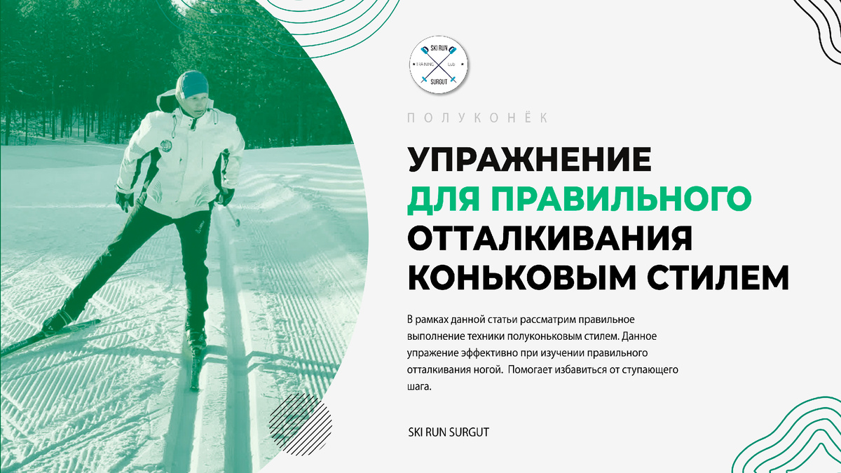 В этой статье речь пойдёт о передвижение полуконьковым стилем. Данное упражнение очень эффективно на начальных этапах освоения лыжной техники коньковым стилем.