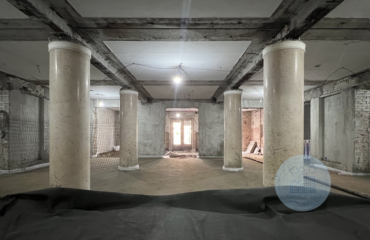 Фойе — это главное помещение в общественном здании, предназначенное для пребывания посетителей во время ожидания. Мраморные колонны оставят нетронутыми как на первом, так и на втором этаже. Их только отреставрируют.