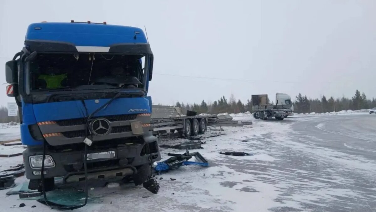 На ямальской трассе водитель тягача пострадал при столкновении с большегрузом