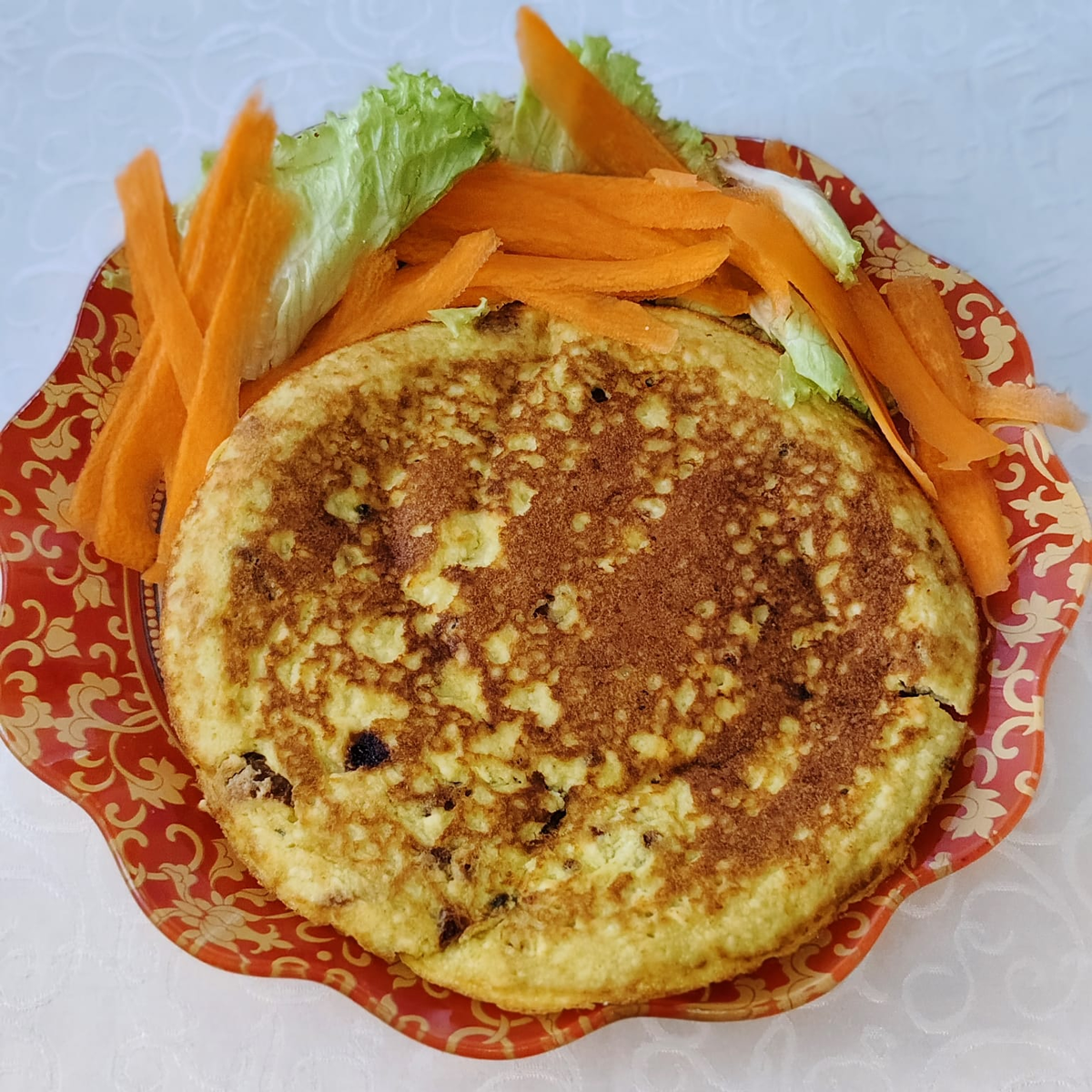 Бодрое утро! В топ завтраков попали эти два варианта, которые я с удовольствием эксплуатирую. Всего два, потому что всю неделю на дежурных не готова сидеть) А эти просты и удобны в день отъезда или приезда, когда нет времени, настроения или возможности что-то готовить и придумывать, нет продуктов в холодильнике для изысков и наворотов и ещё по куче других причин . Я путешествую сейчас минимум 2 раза в год и в день отъезда и в день приезда готовлю именно эти завтраки. Продуктов нужно минимум, времени и усилий тоже. Яйца всегда есть в холодильнике, хорошо хранятся в нём, к тому же являются отличным источником белка. Творог можно купить и отправить в морозильник, что я и делаю. Ведь нам однозначно нужен полноценный белковый завтрак, даже дежурный 1. Омлет с творогом Люблю. Сытно-вкусно-красиво. Раньше я готовила с творогом и шпинатом или порошком шпината. Сейчас стала добавлять ещё овощи. Например, вяленые помидоры. Вот же - баночка с ними такая маленькая, но я наверное уже десяток блюд