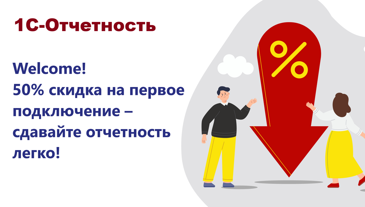 1С-Отчетность: Welcome! 50% скидка на первое подключение – сдавайте отчетность легко!