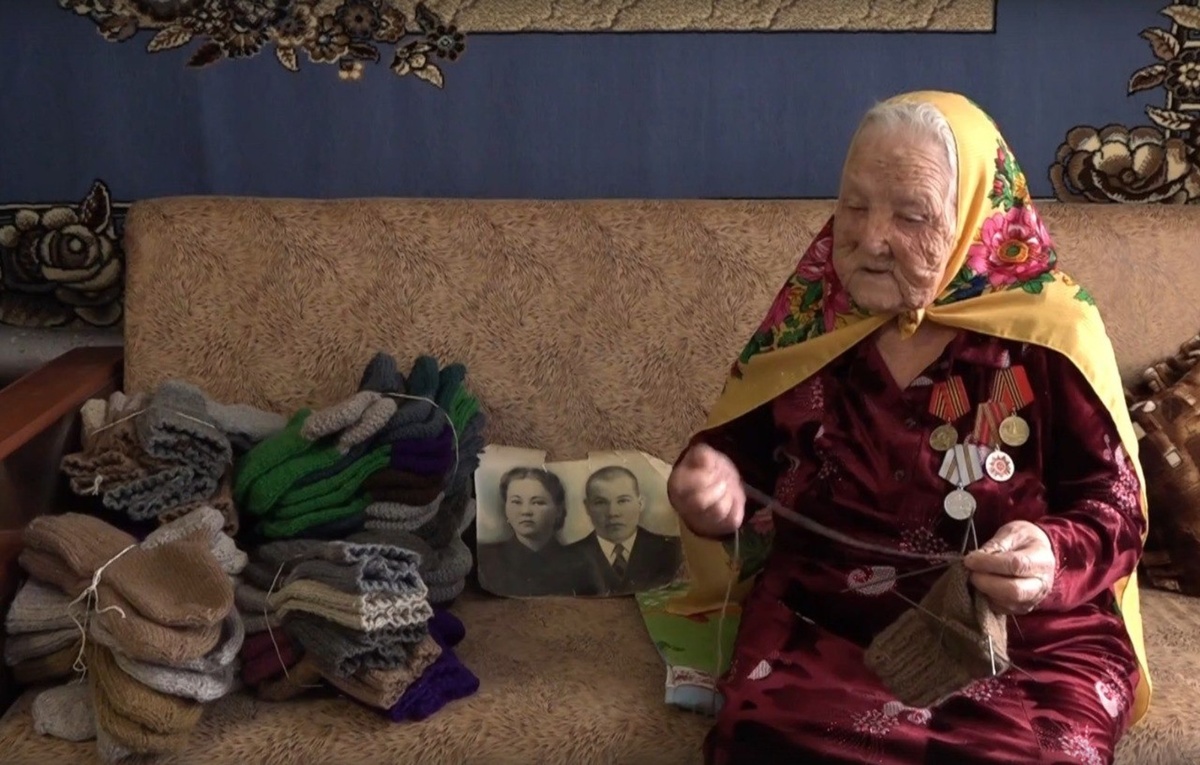 В Башкирии бабушка связала сотни пар носков участникам СВО