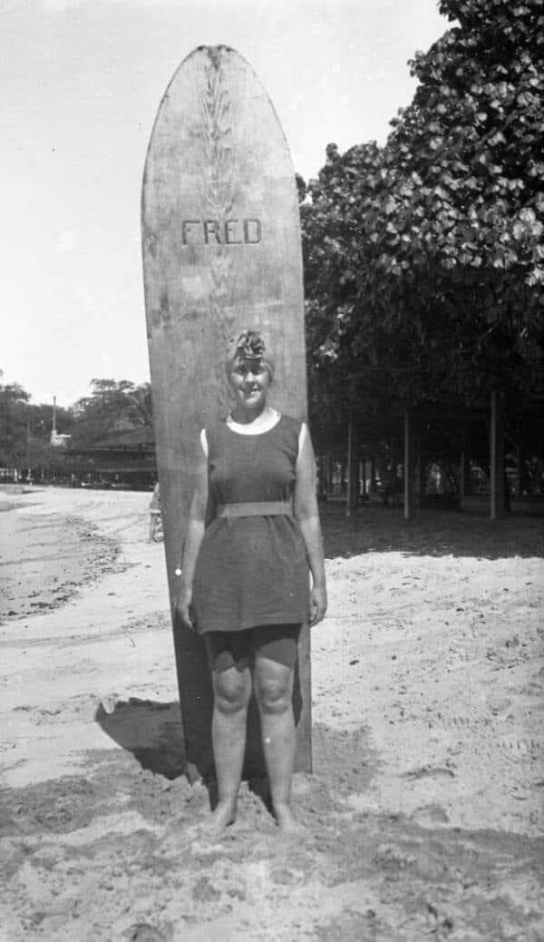 К 1922 году будущая королева детективных романов Агата Миллер только опубликовала свой первый роман и вышла замуж за Арчибальда Кристи. Причём супруг сразу же предложил Агате отправиться в кругосветное путешествие. В 24-м должна была состояться Британская Имперская выставка и делегация из Англии должна была посетить все доминионы. И 20 января 1922 года они отправились в кругосветное путешествие. Делегация должна была посетить Южную Африку, Австралию, Новую Зеландию, Гавайи, США и Канаду. Агата была довольно любознательной натурой. Ее манило все новое и неизвестное. Но сегодня описывать весь путь молодожёнов я не буду. Остановлюсь лишь на одном факте из биографии Агаты Кристи. Ещё находясь в ЮАР Агату и Арчибальда познакомили с довольно интересным видом спорта - сёрфингом. Она даже упомянет об этом в своей книге «Человек в коричневом костюме». Но, в Южной Африке они сёрфили только лёжа на доске. А вот когда супруги оказались на Гавайях, то им впервые предстояло встать на неё . Первый о