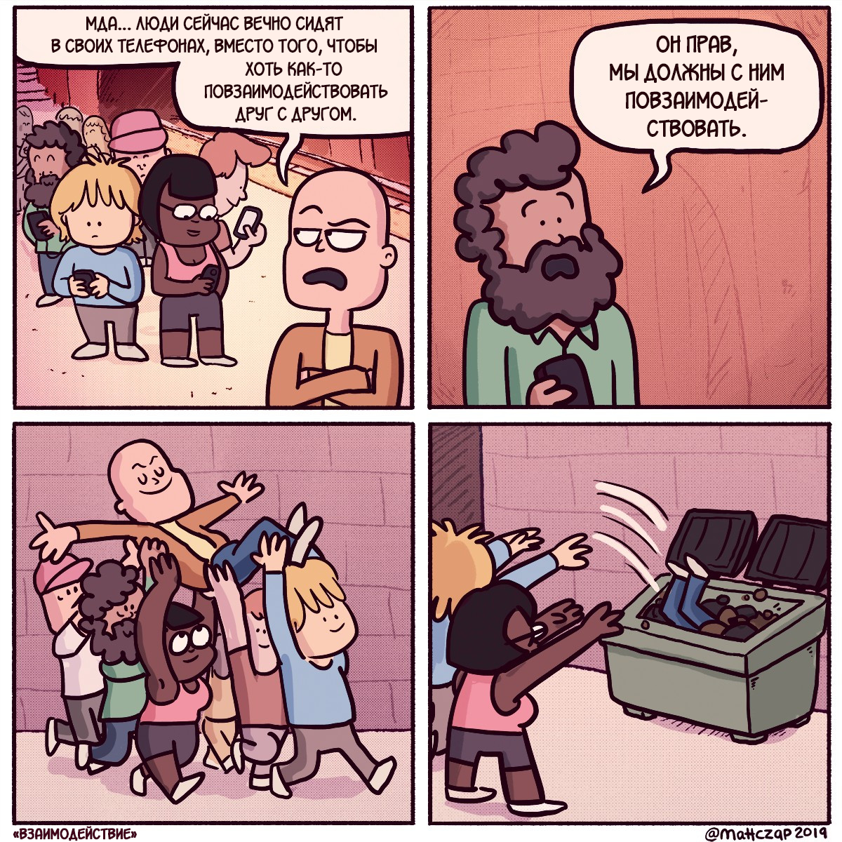 Мэтт Цап (Matt Czap) - это иллюстратор и автор комиксов из Нью-Йорка (Бруклин). Мэтт родился в Северной Вирджинии, а в Нью-Йорк переехал, чтобы осуществить свою мечту - «зарабатывать кучу денег, рисуя мультфильмы». Какое-то время Мэтт Цап выступал в театре, но из-за пандемии пришлось отказаться от живых поступлений. В настоящее время он работает иллюстратором на фрилансе и берет заказы на создание анимаций, раскадровок и разработку персонажей - с работами автора можно ознакомиться на его сайте. А еще Мэтт Цап рисует небольшие юмористические комиксы, которые выкладывает в сеть - в соцсетях его можно найти по нику mattczap.
