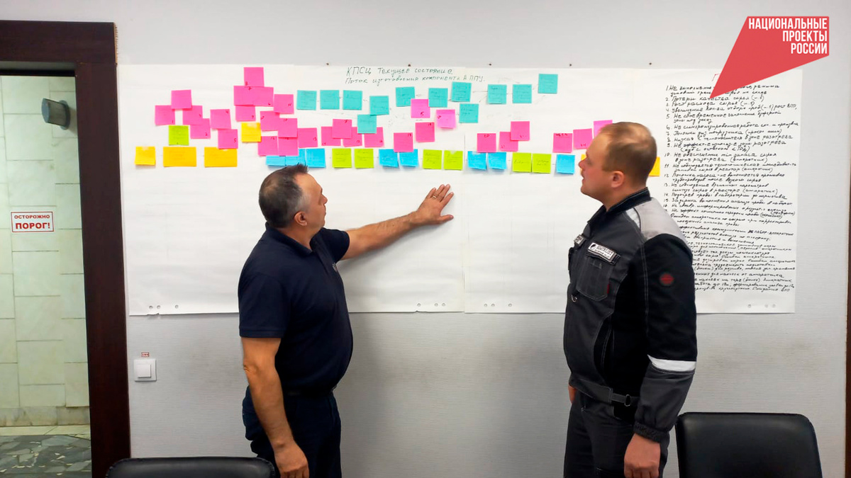 В рамках реализации федпроекта проекта «Производительность труда», входящего в структуру нацпроекта «Эффективная и конкурентная экономика», АО «Химтраст» приступило к реализации Программы. Пилотным потоком проекта, по итогам проведённого анкетирования участников рабочей группы, определён поток производства компонентов продукта «А пенополиуретан». Рабочая группа проекта провела изучение текущего состояния пилотного потока. С этой целью был проведён сбор первичной информации обо всех операциях в потоке и составлена укрупненная карты потока. Также участниками рабочей группы проведено обследование всех операций, собрана и структурирована полученная информация. Результаты выполненного картирования и комплексная оценка разработанной КПСЦ текущего состояния позволили сотрудникам предприятия оценить эффективность процессов на основании применения инструментов, методов и принципов бережливого производства. На этапе формирования и анализа КПСЦ текущего состояния работники предприятия стали предл
